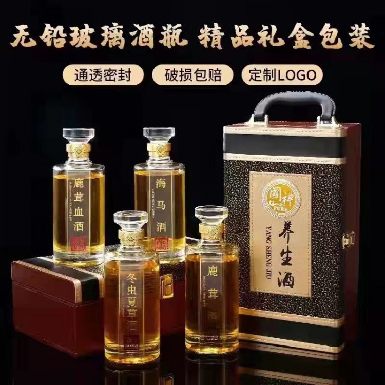 新款喷涂烤花玻璃白酒瓶 一斤装全套包装 空酒瓶子