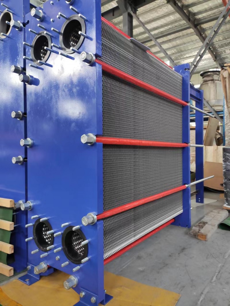 过的流体形成湍流达到强化换热的目的。在板片组装过程时,带有垫片的板面朝向固定压紧板,相邻两张