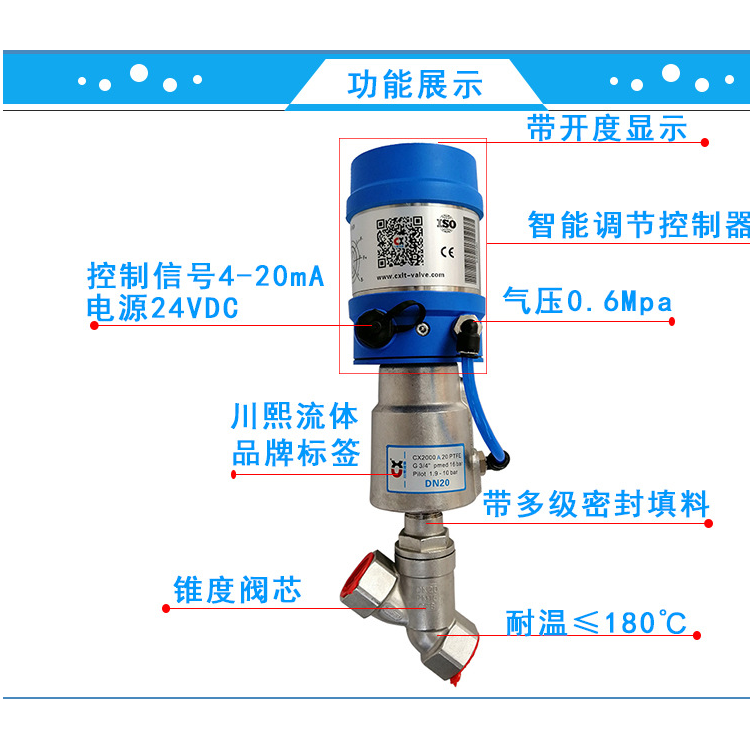 本公司生产的比例调节阀是一款基于微处理器的智能式高精度调节阀。阀门的开度可通过外部输入信号 4-20mA 或 0-5V/10V 设定。定位器运用自动控制算法和微处理器的数字输出来对模拟电路进行控制的一种非常有效的技术,快速而准确地实现阀门的开度调节,从而来控制流体管路的流量。
