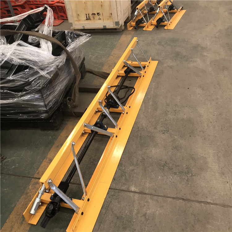 产品特点: 性能优越,启动容易。 整平底板选用冷轧钢板,耐磨、耐腐蚀。 框架式振梁操作手柄单侧操作,只需一人即可完成操作。 混凝土振动梁支座采用进口超抗震支座,保证了混凝土振动梁的整体性能