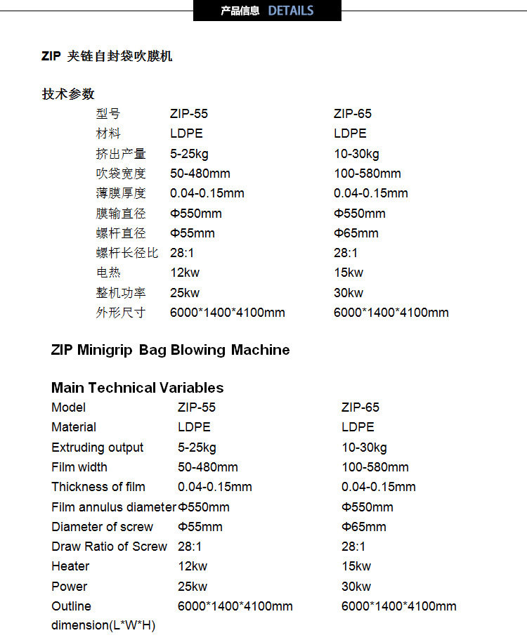 | 产品用途 | 咨询客服 | 吹膜厚度 | 咨询客服(mm) | 螺杆直径 | 咨询客服(mm) |