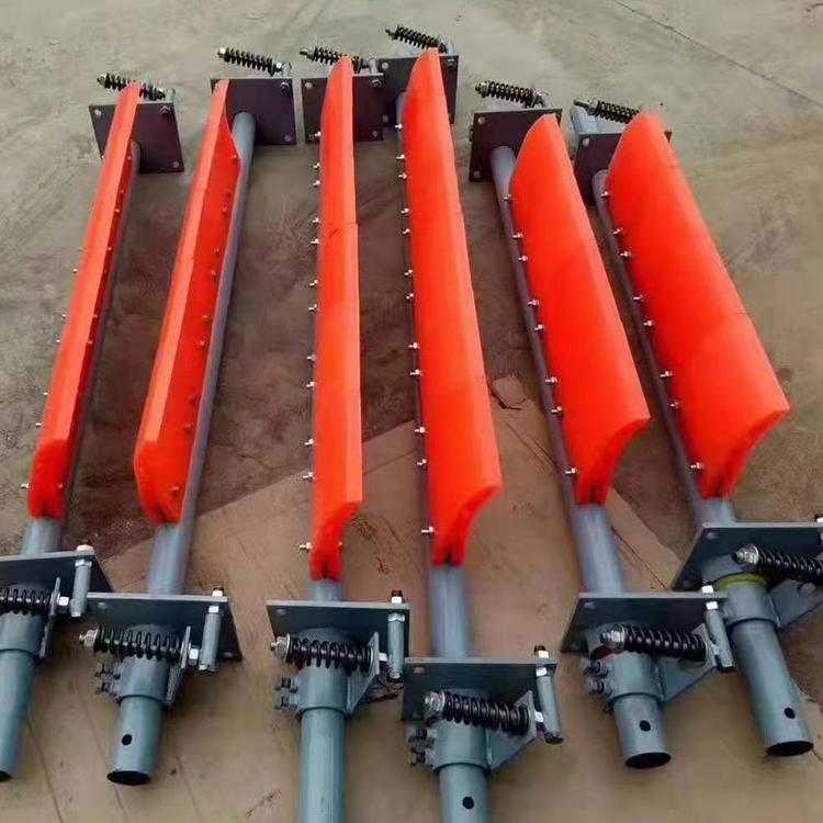 清扫器为高分子聚氨酯,摩擦系数低、高耐磨、具有刮料效果,防腐蚀、防断裂又不会伤及皮带。适用于电力
