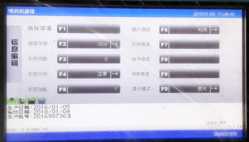 ●本机器含有5×5、5×7、7×9、12×16、18×24、12×12、16×16等多种点阵字体喷印