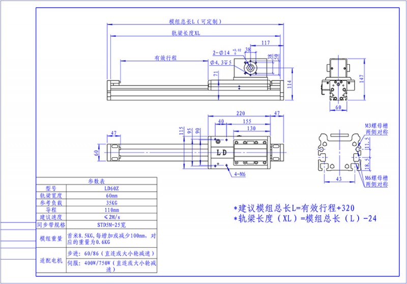 经济款中型同步带直线模组LD5025
