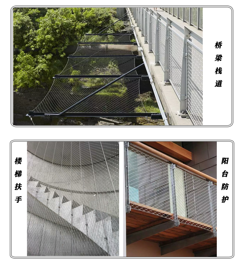 阳台栏杆安全防护网 空中栈道防坠网 卡扣不锈钢绳网
