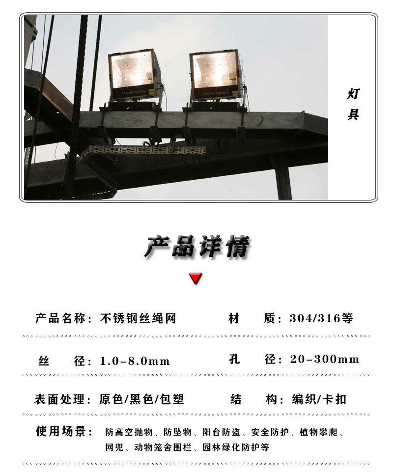 手工编织绳网 柔性不锈钢绳网 304卡扣防坠网 菱形孔防护网