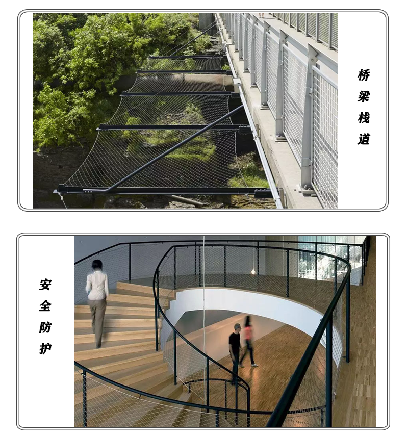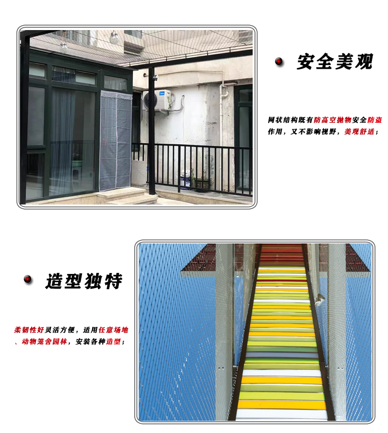 空中走廊防坠网 人行道栏杆安全防护网 卡扣不锈钢绳网 装饰网