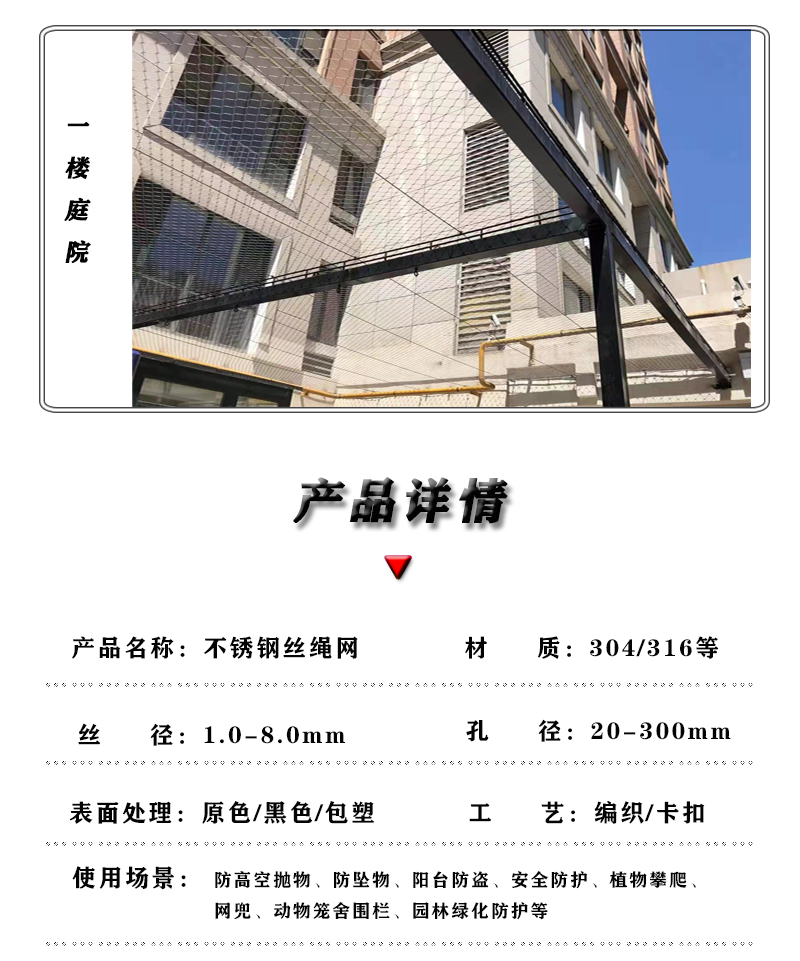 阳台栏杆安全防护网 空中栈道防坠网 卡扣不锈钢绳网