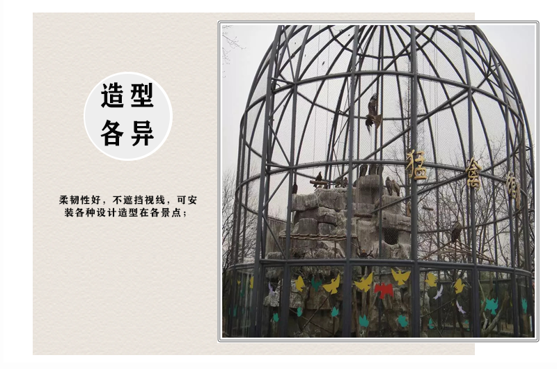老虎笼舍 孔雀笼舍软网 四蹄类围栏网 304手工编织绳网