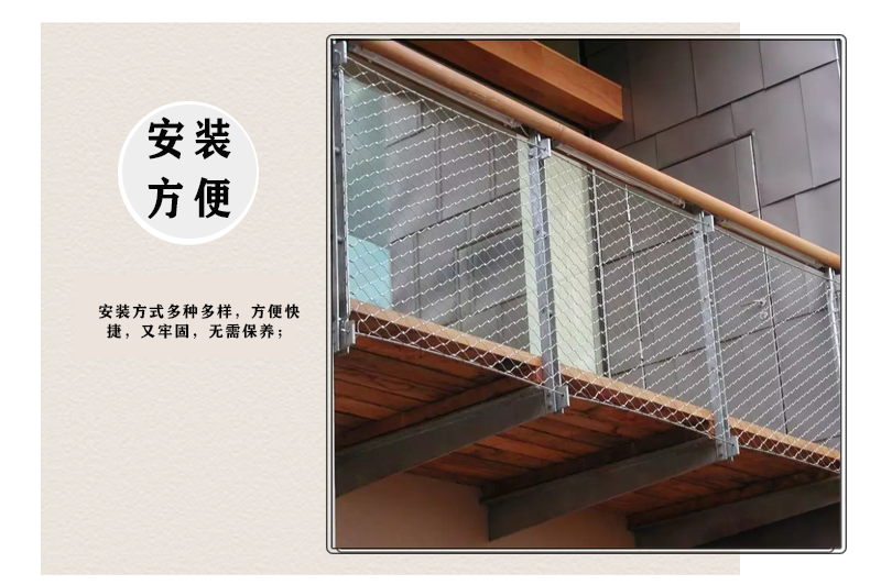 阳台栏杆安全防护网 空中栈道防坠网 卡扣不锈钢绳网
