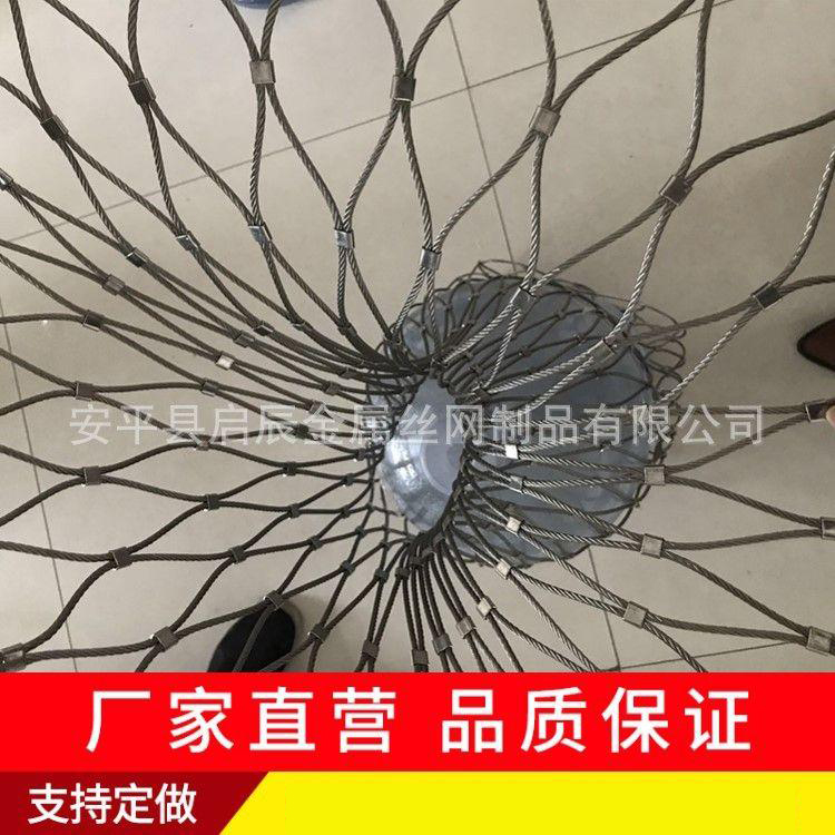 不锈钢绳网兜是不锈钢绳网的新型产品,其工艺是把不锈钢丝绳通过特殊的编织方式或者通过卡扣连接成一个网兜的形状。可根据客户的尺寸要求进行加工定做。不锈钢绳网兜的材质一般有304、316、316L等材质。其产品具有轻量化、柔软性好、耐腐蚀、耐冲击、具有很强的抗拉强度,美观结实耐用等特点。常用规格:网孔3x3cm、4x4cm、5x5cm、6x6cm、7x7cm、8x8cm等。但没有具体规格,因为它可以编织任意尺寸的网孔。这一点得到了设计者和使用者的喜爱。具体按客户要求来做,我们可提供参考。常用的钢丝绳结构:7x7和7x19优质不锈钢丝绳。常用绳径:1.2、1.5、2.0、2.5、3.0、3.2、4.0mm。 用途可以作为船舶上的灯罩,背包防盗网,物品网兜等用途。编织型绳网:卡扣型绳网:产品展示: