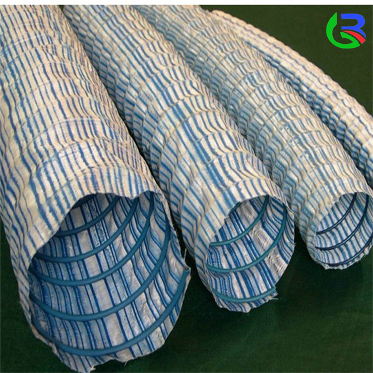 高碳钢支持钢圈经防锈处理后外覆一层PVC与透水材料结为一体,具有足够的抗压扁能力并可以防止倒管。