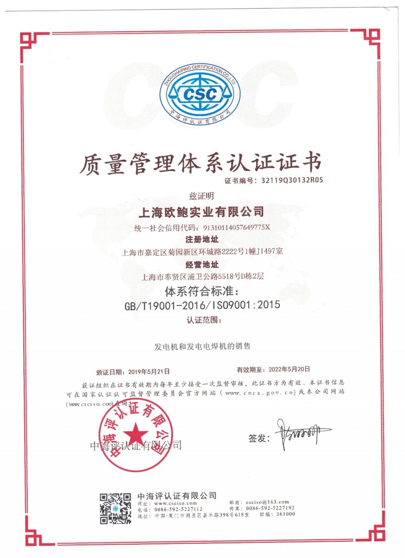 | 发证机构: | 上海欧鲍实业有限公司 | 发证时间 : | 2019-05-21 |