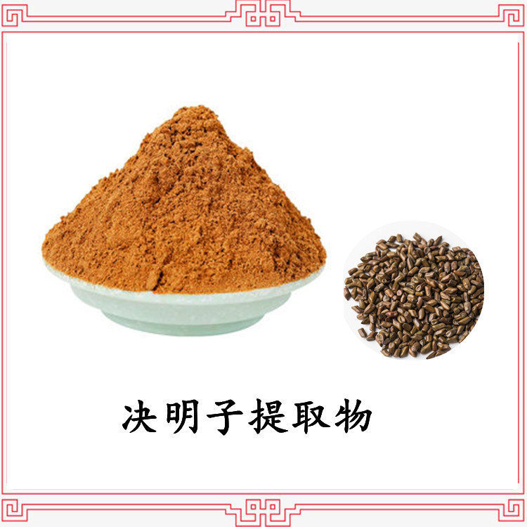 【产品名称】:决明子提取物【产品别名】:决明子大黄酚、决明子总蒽醌、假绿豆、细叶猪屎豆【英文名称】:Cassia Seed Extract【提取部位】: 本品为豆科植物决明Cassia obtusifolia L. 或小决明Cassia tora L. 的干燥成熟种子。秋季采收成熟果实,晒干,打下种子,除去杂质。【主要成分】:新鲜种子含大黄酚、大黄素、芦荟大黄素、大黄酸、大黄素葡萄糖甙、大黄素蒽酮、大黄素甲醚、决明素、橙黄决明素,以及新月孢子菌玫瑰色素、决明松、决明内酯。尚含维生素A。