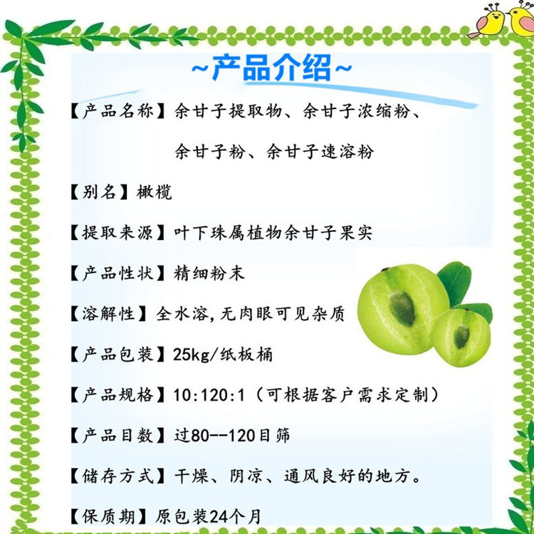 余甘子浓缩粉 易水溶 无沉淀 喷雾干燥工艺 多种规格 可定制