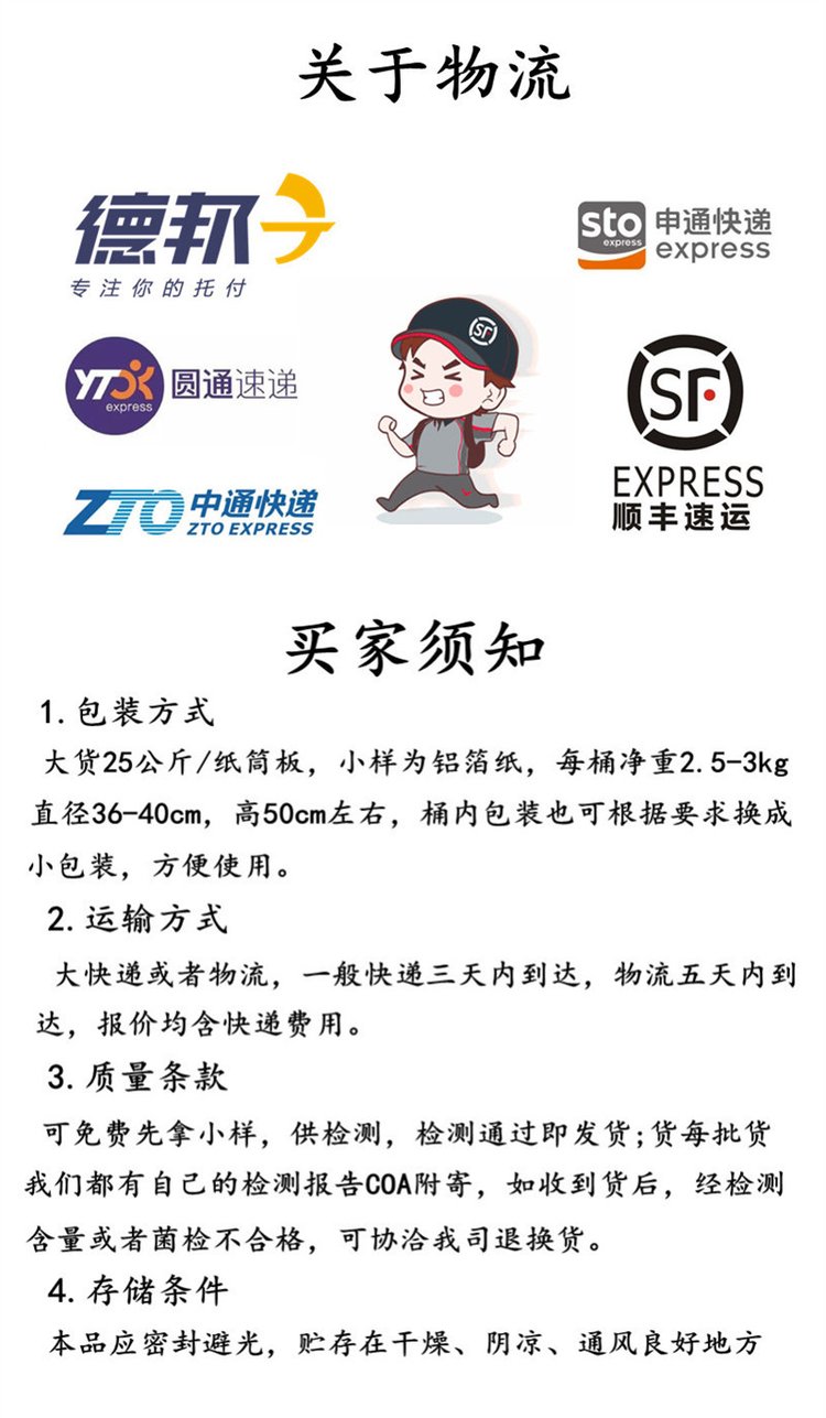 【产品名称】大麦粉【产品别称】稞麦、牟麦、饭麦、赤膊麦【提取来源】植物大麦的果实【主要成分】含淀粉、蛋白质、钙、磷、尿囊素等成份。【产品外观】类白色粉末【网筛孔径】过80-100目筛【储存条件】阴凉、干燥、避光、避高温处【包装方式】1kg/铝箔袋;5kg/纸箱;10kg、25kg/纸板桶(可根据客户需求定制)【保质期限】原包装24个月【应用领域】固体饮料,乳制品,方便食品,膨化食品,调味品,烘焙食品,休闲食品,冷食冷饮等。【水溶性】全水溶,无肉眼可见杂质