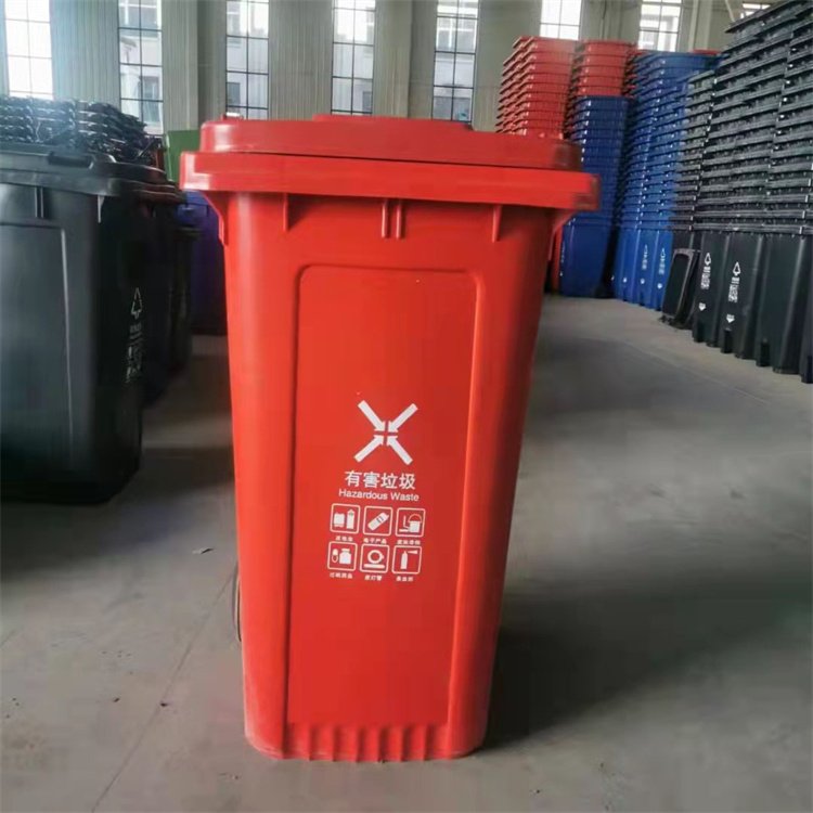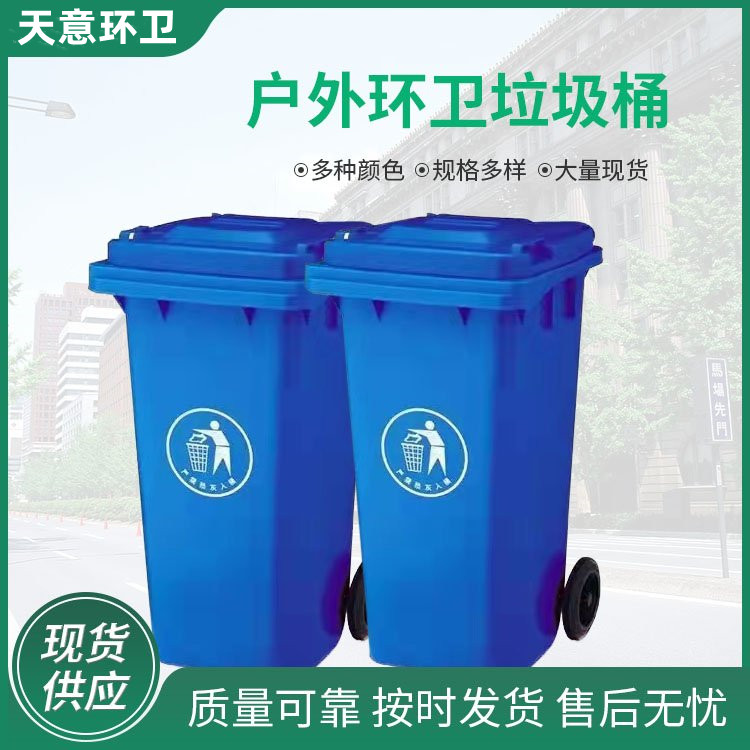 » 天意240升塑料挂车桶 加厚带盖垃圾桶实商家 户外脚踏垃圾箱