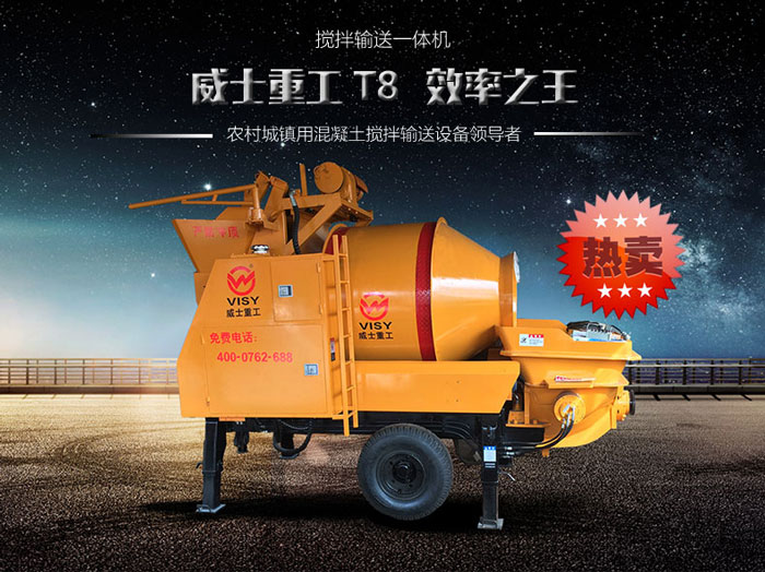 产品简介: 我公司滚筒式搅拌拖泵一体机有功率小、小巧、移动方便、成本低等特点,有30KW、37KW、45KW、55KW等节能的有利产品,可适用地暖、喷浆工程和耐火材料以及客土的喷播和抛洒,方量小,且比大中型混凝土泵、泵车和车载泵使用方便,特别适合于农村城镇及新农村建设5-10层楼房建设等。泵送混凝土垂直实际高度可达80-100米,水平距离150米—300米。