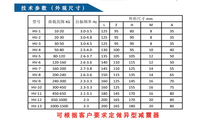 载荷范围 3-900Kg;固有频率2.1Hz-5.4Hz;