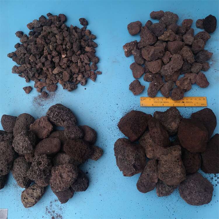 火山石有黑色 红色 灰色 规格有1-3毫米 3-6毫米 6-9毫米 1-2公分 2-3公分 3-5公分 包装25公斤 吨包 散装