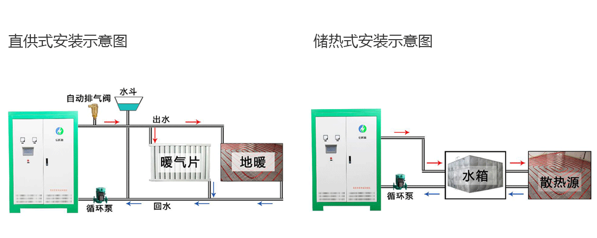 高频交流电压流过缠绕在非金属材料管外的高频导线,高速变化的磁场内部产生的磁力线切割非金属材料管内部的金属容器时产生无数小涡流,使水快速加热,再通过水暖系统(地暖、暖气片)传输热量实现供暖。