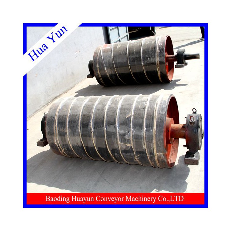 我公司生产的滚筒采用先进的技术加工而成,筒皮厚度大,吸收能力强。具有如下特点:精确的滚筒同心度保证滚筒运转良好,最大的与胶带面接触,满足物料在胶带卸料的同时,减少轴的变形和减少轴承的受力。滚筒分光面、包胶和铸胶三种。