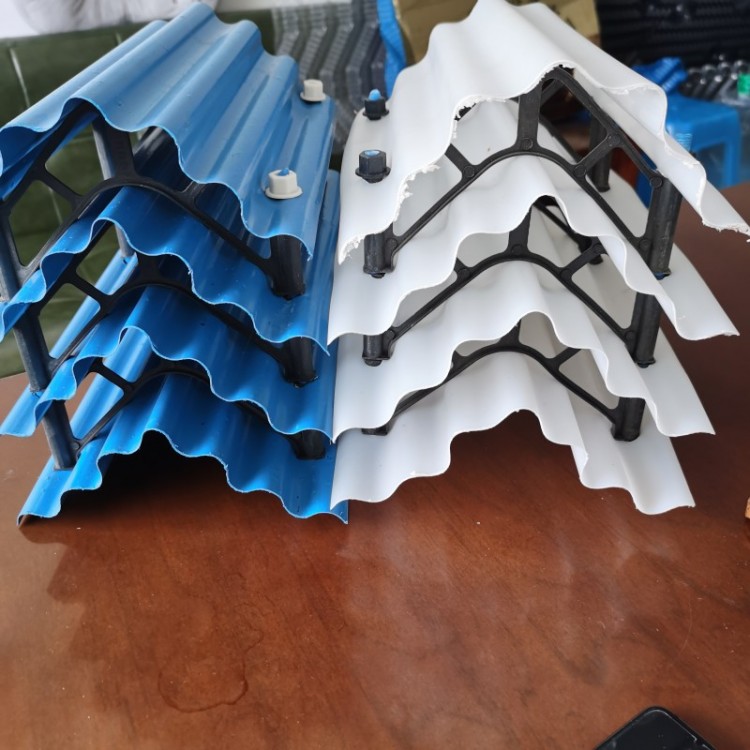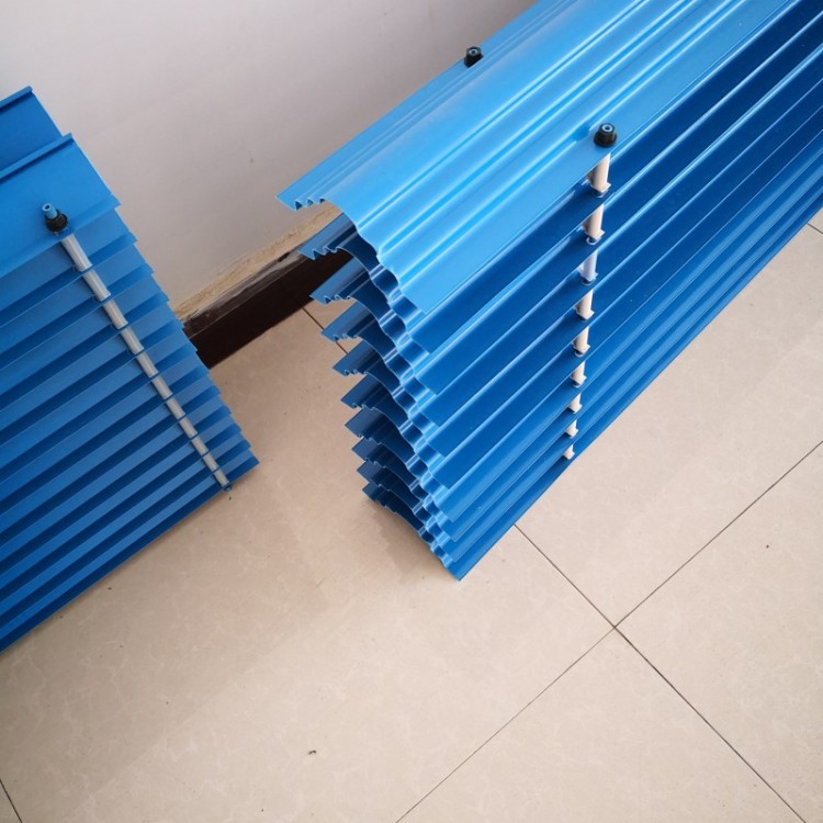 冷却塔多波收水器是减除冷却塔排出湿热空气中夹带的大量细小水滴漂移物,避免对周围环境的水雾污染、结冰、节水和保护环境的装置。160-50型高效低阻收水器,采用frp材料或pvc材料挤压成型,在收水器的片材中增加了进口碳黑作为添加剂,大大提高了片材的抗紫外线和抗老化性能。