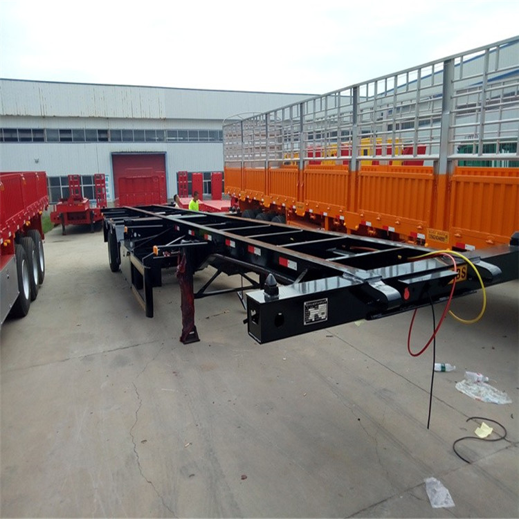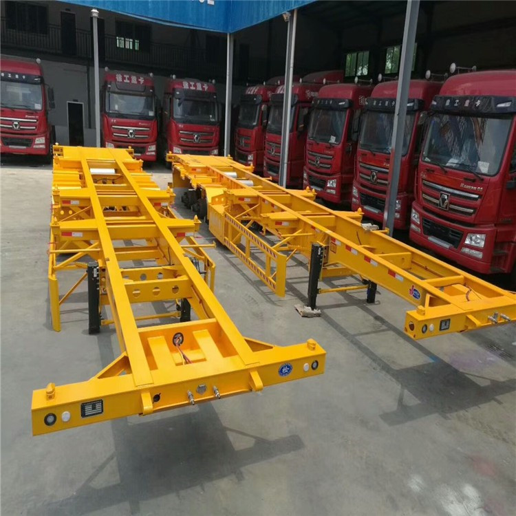 45英尺集装箱骨架半挂车新款配置出口厂家 我公司生产各种挂车,半挂车,全挂车,其在公告内产品低平板半挂车10.5米 栏板半挂车10.5米至13米、仓栅式半挂车9米11米-13米 ,厢式半挂车11米12米13米 ,散装水泥罐式半挂车38立方 集装箱平板后翻自卸半挂车7米至13米,全挂平板拖车,集装箱平板侧翻自卸半挂车10.5米至13米, 鸿盛抽拉式半挂车可抽拉3米4米 种大件运输伸缩式半挂车 或前后伸缩3米至8米以上,20英尺至40英尺48英尺 英尺集装箱运输半挂车,