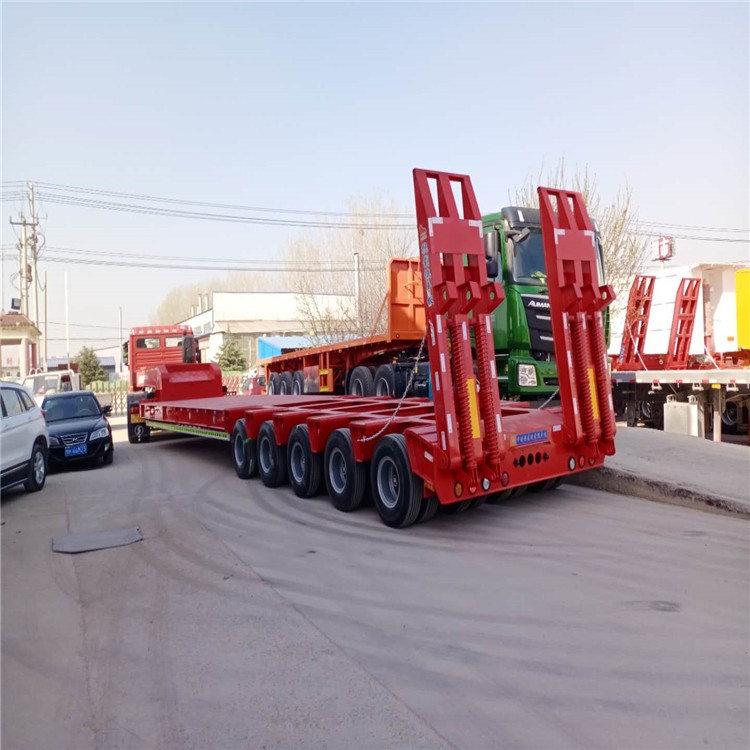 13米低平板半挂车 类型有:两轴高低高,两线四轴高低高,三轴高低高,三线六轴高低高低平板半挂车 用来运输重型汽车(如牵引车、大客车、汽车等)、轨道车辆、矿用机械、林业机械、工程机械(如挖掘机、推土机、装载机、铺路机、起重机等)及其他重载货物, ,运输高货物和通过 的能力就越强。半挂车要想轻有几点可以实现: 低板材厚度。 。高标钢,强度大、韧性好、 低后桥重量。 车桥加上悬挂现在接近两吨,才有轻型桥、碟刹、4片板簧、新式吊耳、真空胎、单胎等都是有效的办法 悬挂。 采用气囊悬挂即可,这点应用较少 低附属件的重量。、侧防护网、网式备胎架、工具箱、篷布架等的重量 有就是采用悬浮后桥,