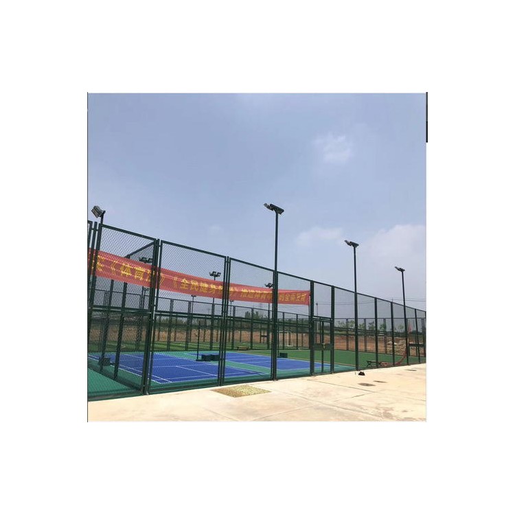 产品特点 ● 施工方法:立柱可根据场地实际情况选择施工方法,即:一种预埋式,一种楼面式(可拆卸)。围网采用常规的平拉式。 ● 工艺:热镀锌钢管(即立柱和横杆)和连接件(看图)的表面都是采用聚酯粉末喷涂,适用全天侯场地使用,美观大方,颜色10年以上不脱落。 ● 快捷:全部采用预制好的材料,现场无需切割、打磨、焊接、刷油漆等,立柱和横柱之间直接使用链接件(看图)和螺栓固定,安装简单、方便、快捷,大大缩短施工工期。无需现场拉网。 ● 出厂材料:立柱、框架(含网)、灯柱(替换立柱)、扣件(钢精)、螺栓#304等。 ● 性能:一次性安装,零维护。 |