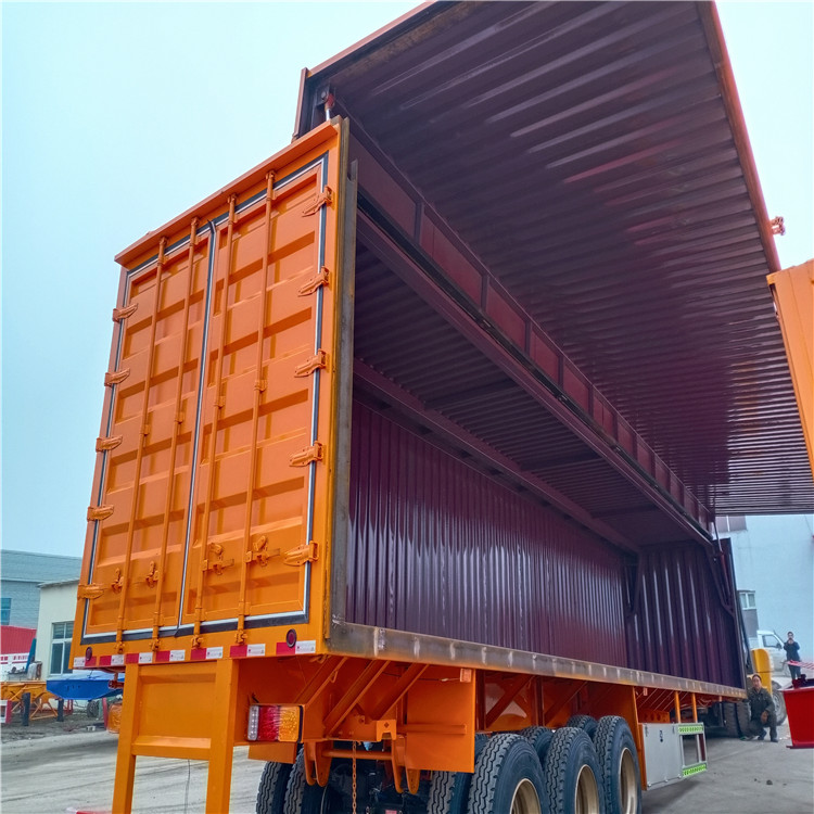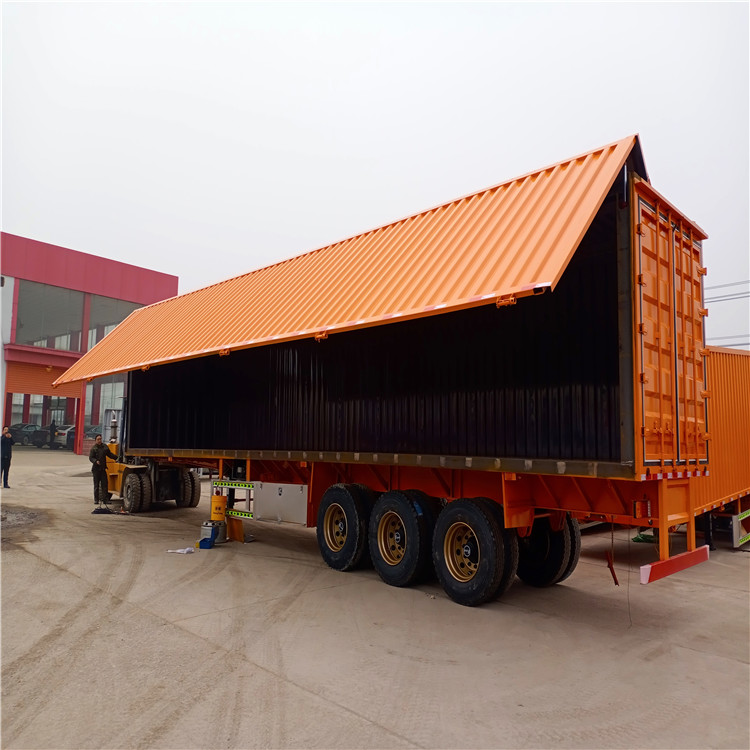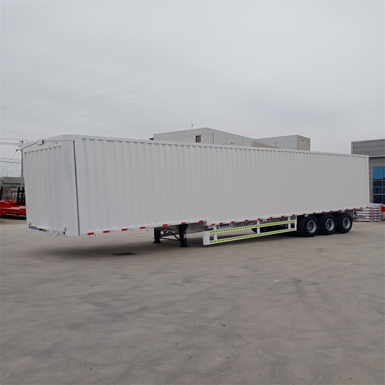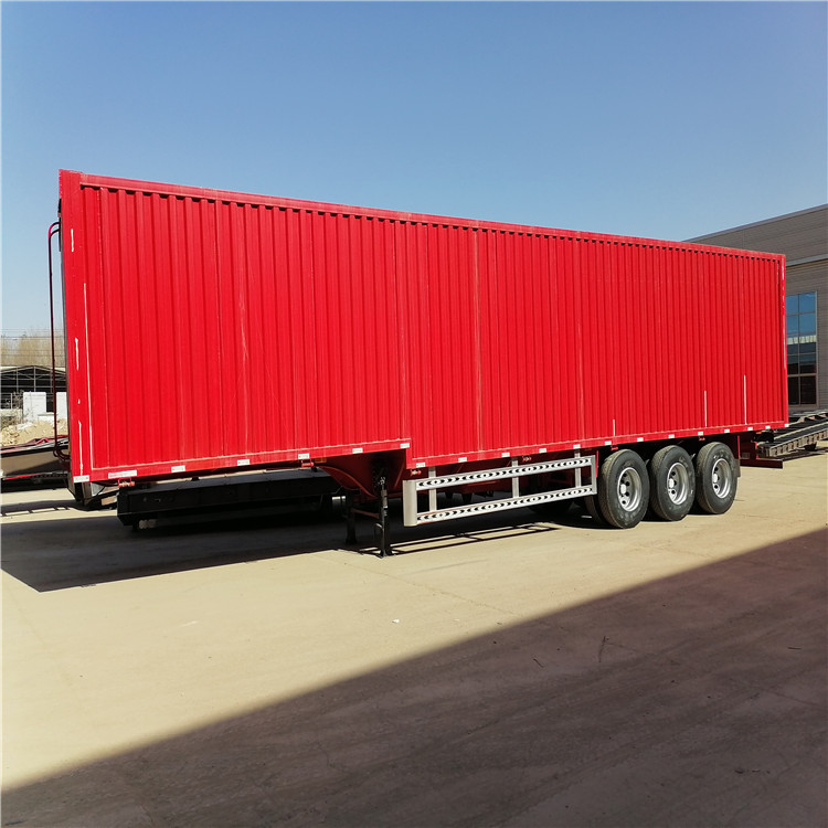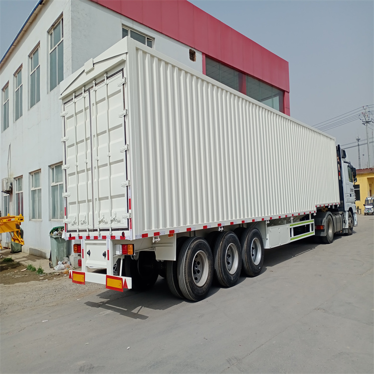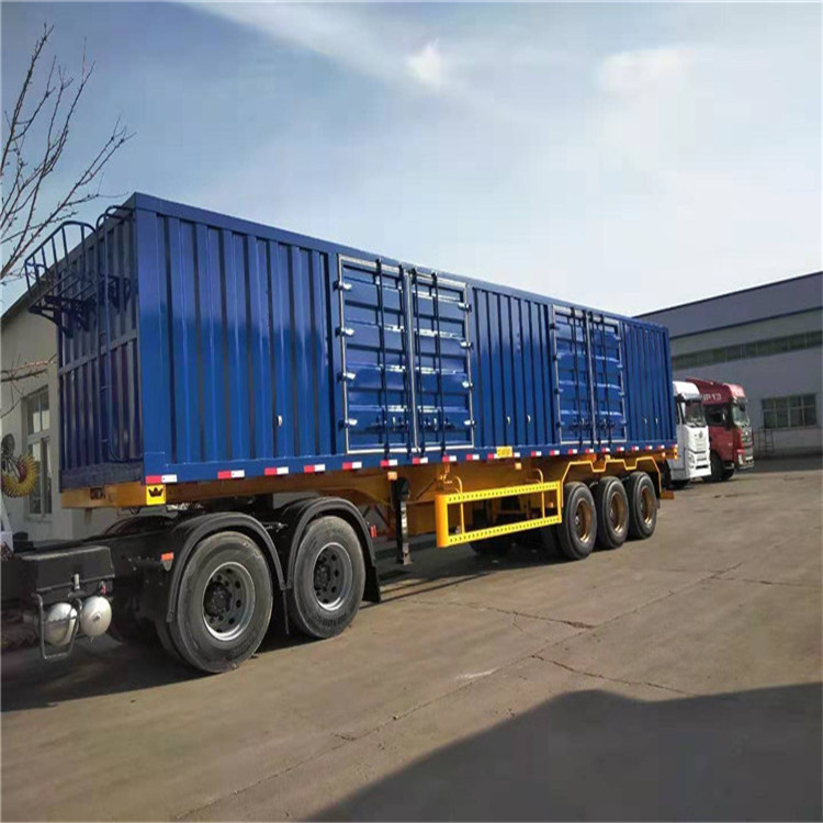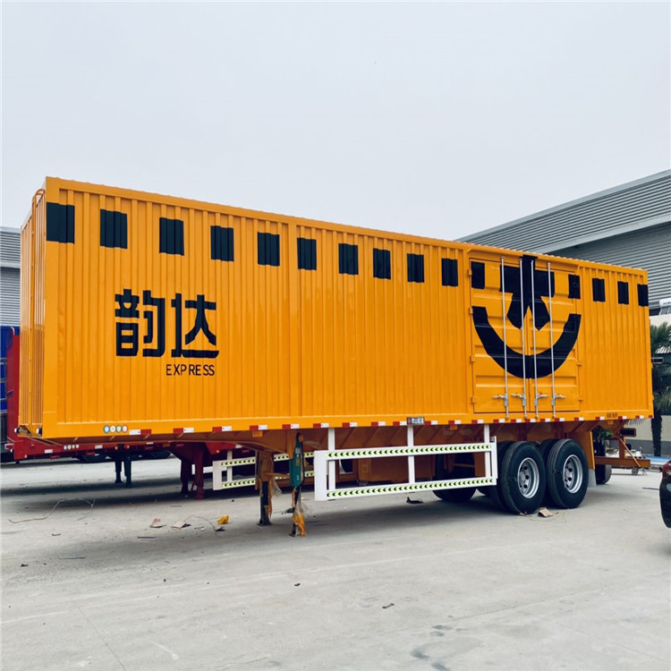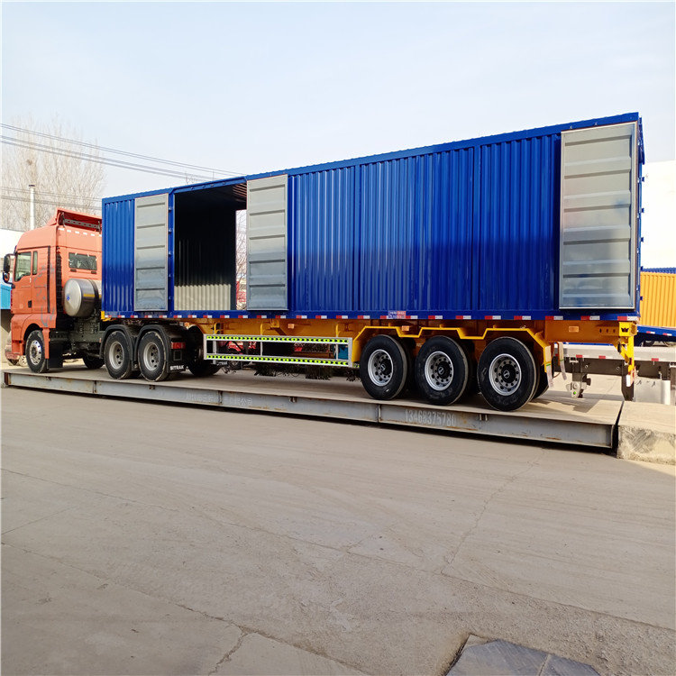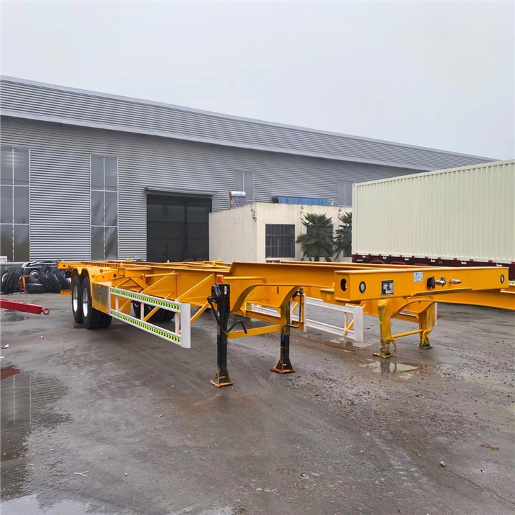 集装箱运输骨架半挂车是集装箱运输半挂车车架的一种还有一种是平板式。骨架式车驾由纵梁、横梁和前、后端梁焊接而成,纵梁采用 钢板16Mn埋弧焊接成工字形(主要尺寸有450、500),横梁采用 钢板冲压成槽型,前后端梁为焊接式矩形截面。中间集装箱锁紧装置部位设置了整体式长横梁,以提高集装箱锁紧装置的承载能力。平板式与骨架式的区别在于平板式增设了边框和花纹地板。木系列集装箱运输半挂车的车架全部喷丸处理,整个车架是在专用的定位台架上组装、焊接而成,其结构合理、强度高、外形美观。在车架上设置了集装箱紧缩装置,可以装载40英尺、20英尺两种标准集装箱。前后端的四个集装箱紧缩装置为固定式结构,中间集装箱紧缩装置为可藏式结构。装载集装箱时,根据需要可将中间集装箱锁紧装置降低到货台平面以下。其作用是当牵引装置与挂车脱开时,用于支撑地面,承受半挂车前部载荷。支承装置有单动式和联动式两种,主要由支承盘、螺杆传动机构、减速箱和操纵手柄等构成。悬挂装置有单轴式悬挂和双轴式悬挂三轴式悬挂三种装置半挂车配备两付备胎架,分别安装在挂车车架左、右两侧,并备有备胎升降器。