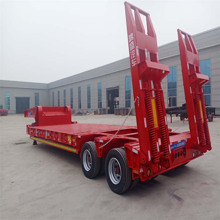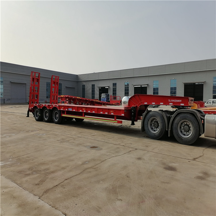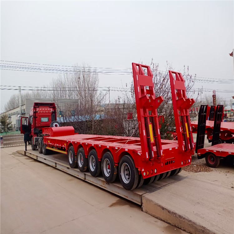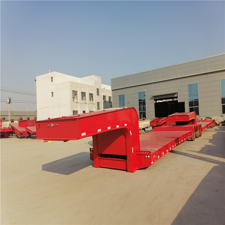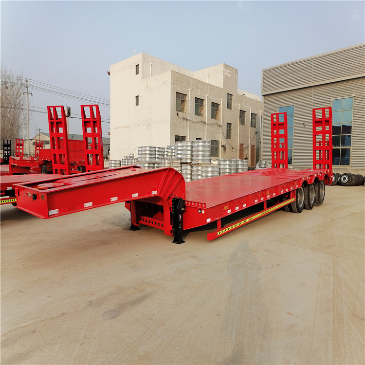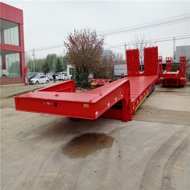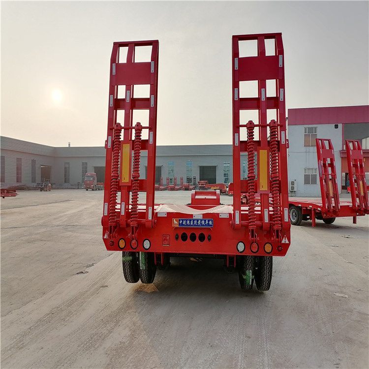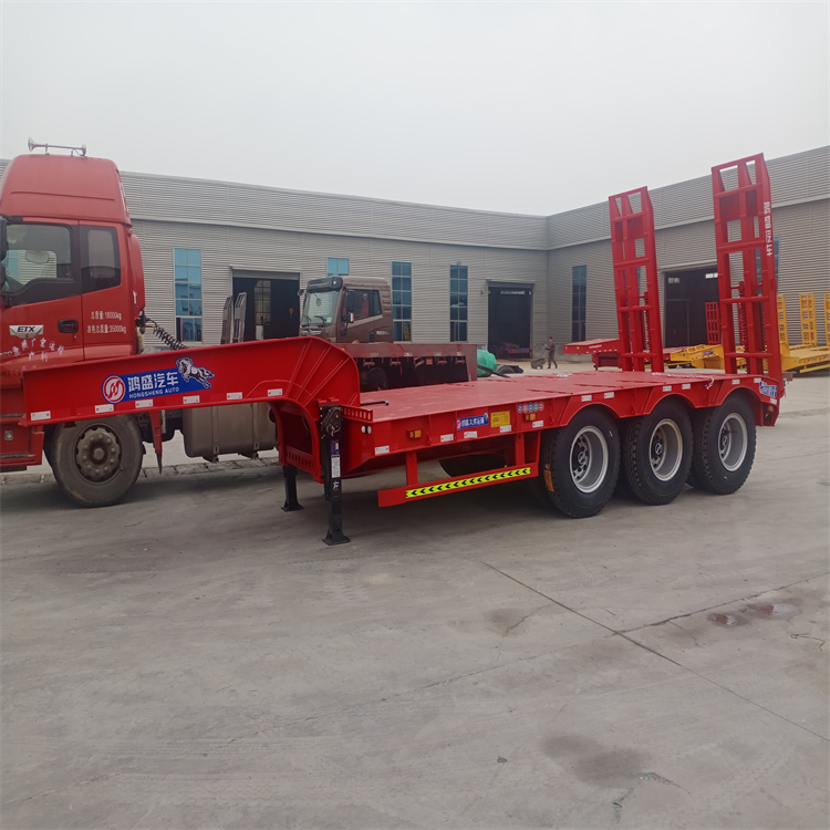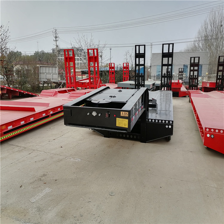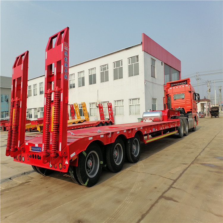 13.75米重型低平板半挂车用于装载 大型和重货件的挂车。重型挂车的基本形式为单体平板挂车。它一般有下列结构。车架和轮轴 轮轴多为两轴共线,即在一根轴线上有左右两根轮轴,也称作两轴列。单体平板挂车有轴线。一根轮轴装4只轮胎,一道轴线就有8只轮胎。所以全车的宽度可达 3米以上。,一般装用直径小而载重能力大的钢丝子午线宽轮辋轮胎(见汽车轮胎), 。车架采用高强度合金钢箱形截面的焊接结构。半挂车是主要运输体积大,且不易拆分的大件货物,比如挖掘机等等,栅栏式比较适合拉鲜活类的货物,比如蔬菜,水果等等.厢式 适合拉散货及防湿较贵重货物