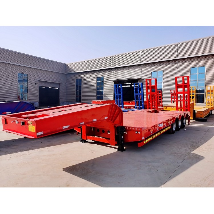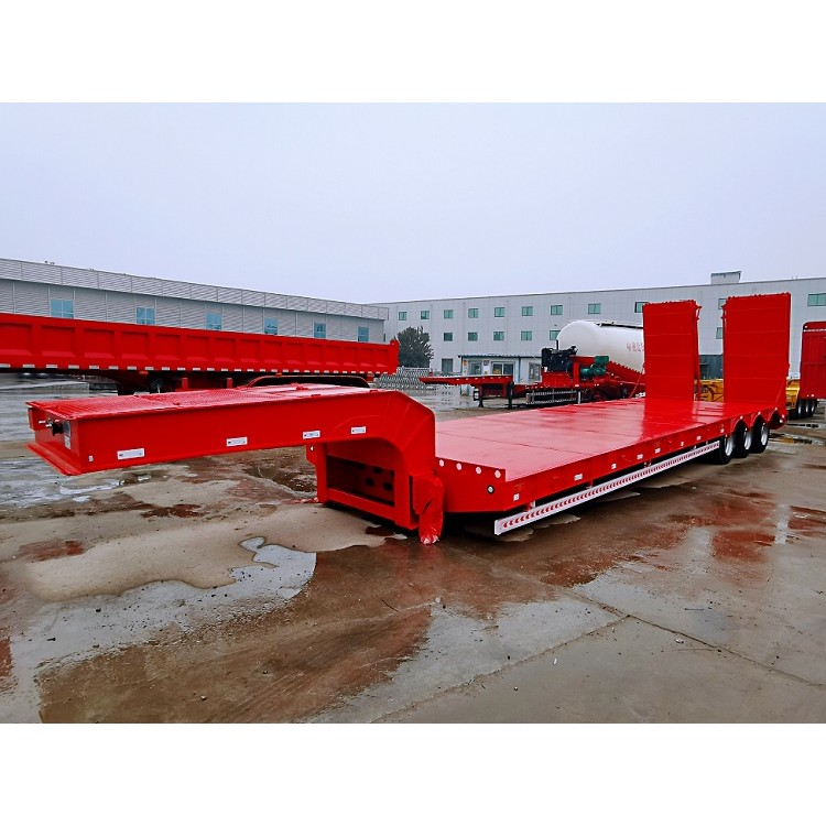 低平板运输半挂车主要用于大型不可拆卸设备的运输等,如挖掘机,装载机等。型号有11米-13米 ,宽为3米及3.1米。分二轴,三轴,及三线六轴等。