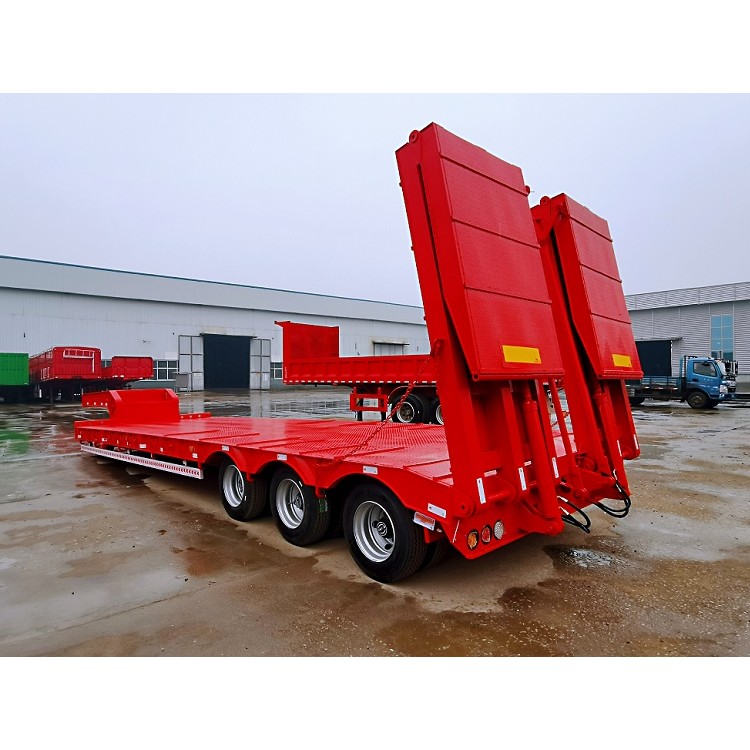 低平板挂车通常用来运输重型汽车(如牵引车、大客车、专用汽车等)、轨道车辆、矿用机器林业机器、农业机器(如挖掘机、推土机、装载机、铺路机、起重机等)及其他重载货物 ,运输 高货物和通过头顶 的能力就越强。低平板半挂车结构和装载 低平板半挂车通常采用凹梁式(或者井型)车架,既车架前段为鹅颈(鹅颈前段的牵引销与牵引s车上的牵引鞍座相连,鹅颈后端与半挂车架相连),中段为货台(车架全低部分),后端为轮架(含车轮)。
