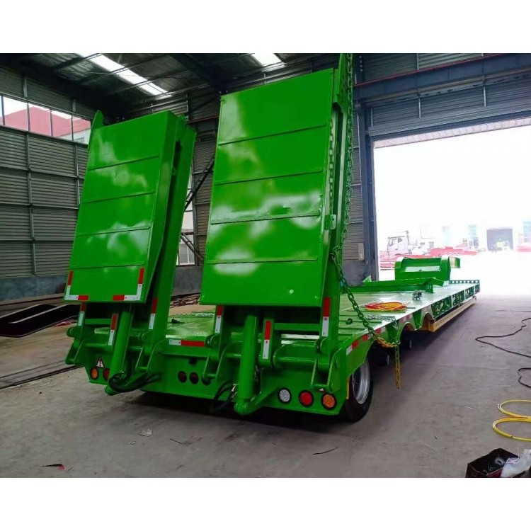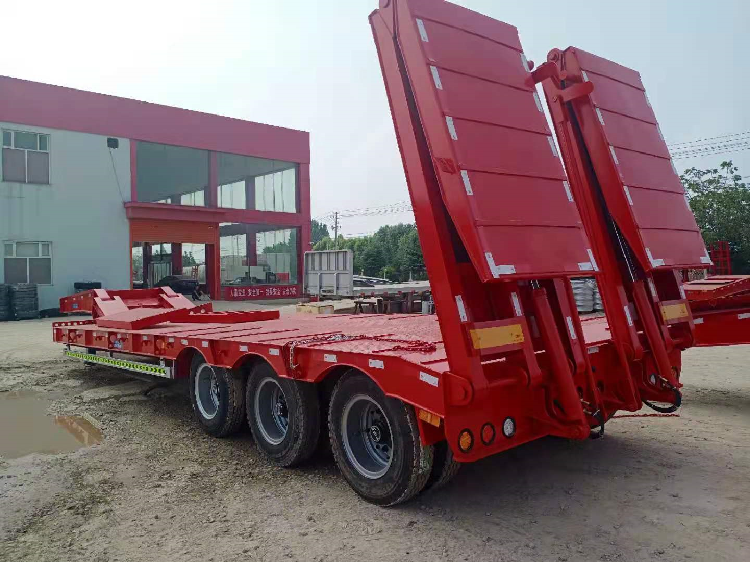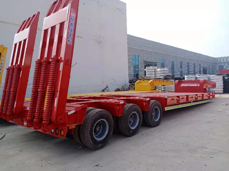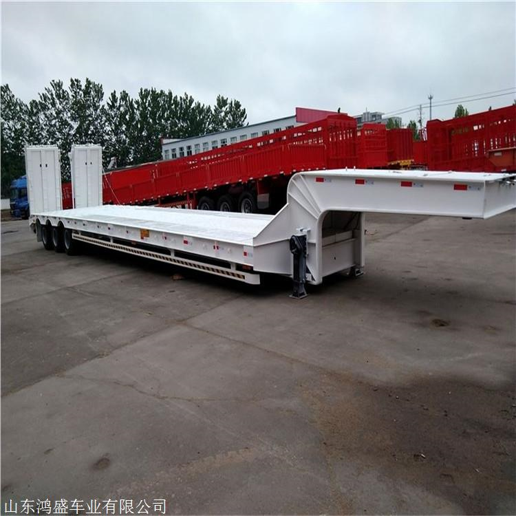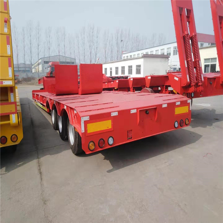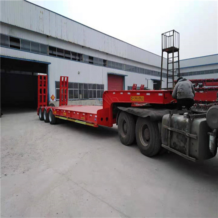 低平板半挂车包括鹅颈式低平板半挂车和特种低平板半挂车系列尺寸有9.5米10.5米11米11.5米12米12.5米13米13.75米 底板平板半挂车,宽度2.8米-3米,款式有高低板,平板式,凹梁式,轮胎外露式,高低高,二轴,三轴,两线四轴高低高,三轴高低高,三线六轴高低高。根据轴数,轮胎的大小,低平板半挂车的载重也是不同的,轴数越多,载重越大,载重范围在20-50吨之间。纵梁采用平直式或鹅颈式,其车架为阶梯型,纵梁截面为工字形,具有刚度高,强度高等特点。 山东鸿盛车业制造 出口型半挂车产品、提供 出口半挂拖车服务、以服务创造出口半挂车打造 、以服务带动营销,对每一个半挂车产品负责,对每一个客户负责。