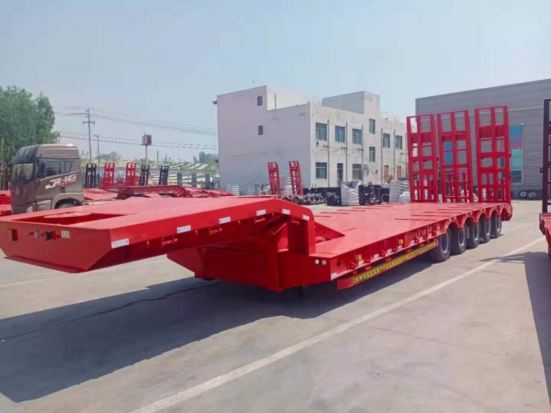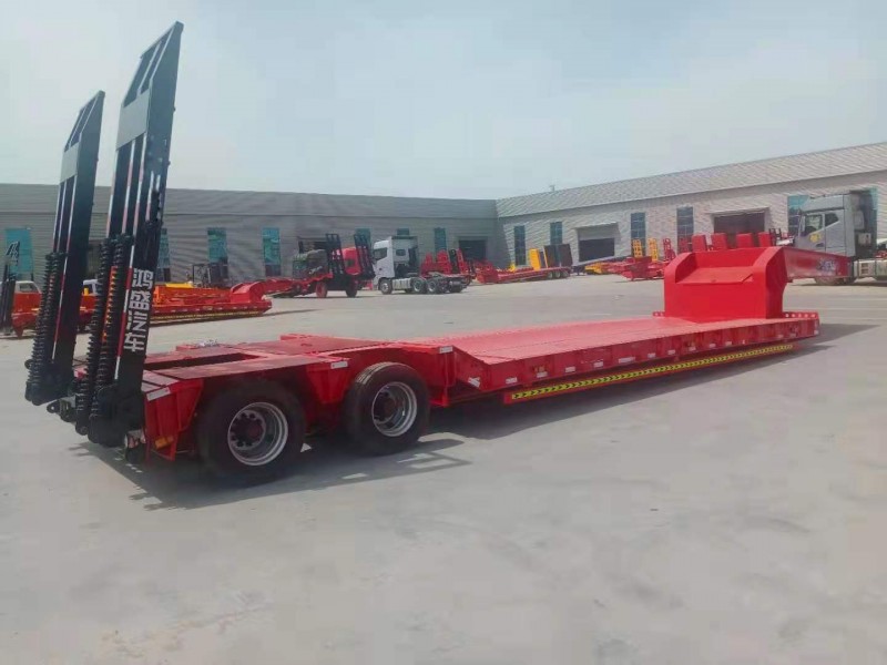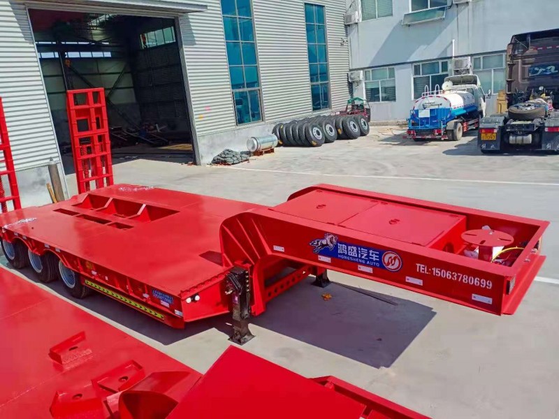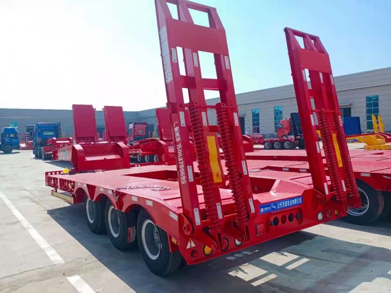 低平板半挂车包括鹅颈式低平板半挂车和特种低平板半挂车系列尺寸有9.5米10.5米11米11.5米12米12.5米13米13.75米 底板平板半挂车,宽度2.8米-3米,款式有高低板,平板式,凹梁式,轮胎外露式,高低高,二轴,三轴,两线四轴高低高,三轴高低高,三线六轴高低高。根据轴数,轮胎的大小,低平板半挂车的载重也是不同的,轴数越多,载重越大,载重范围在20-50吨之间。纵梁采用平直式或鹅颈式,其车架为阶梯型,纵梁截面为工字形,具有刚度高,强度高等特点。 山东鸿盛车业制造 出口型半挂车产品、提供 出口半挂拖车服务、以服务创造出口半挂车打造 、以服务带动营销,对每一个半挂车产品负责,对每一个客户负责。