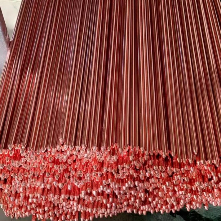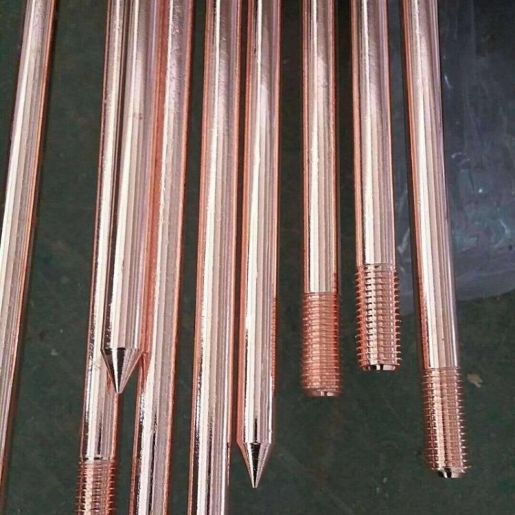 本公司生产的电镀铜接地棒是采用将含量为99.9%的电解铜分子均匀覆盖到低碳钢芯上,使铜与钢芯完全分子结合。它具有铜层厚、粘合度好、不剥离(可轧制螺纹)等特点。它的优点是抗拉强度大,耐腐蚀性强(可保证使用寿命在50年以上)。