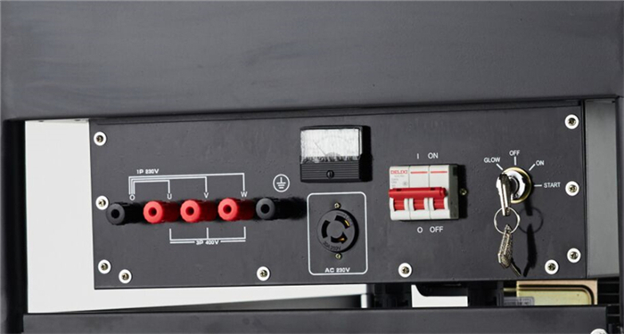 小部分输入激磁绕组产生磁场。当电枢接线柱与机壳短路时,柴油发电机发电机电流迅速增大,此时在电机内产生很大的压降和强烈的电枢反应,使输出的电压急剧下降,