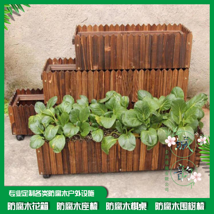 碳化木花箱特色结构稳固、板材厚实、抛光打磨、进口木材、防腐防蛀、健康环保。