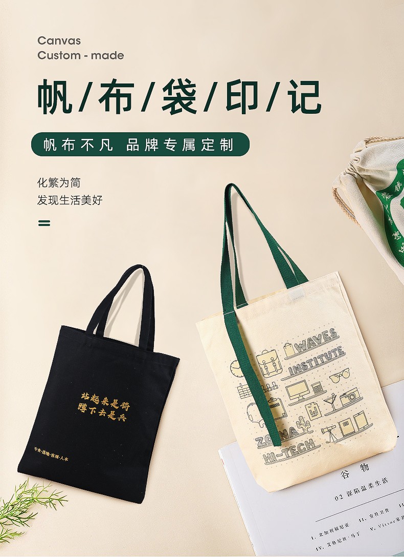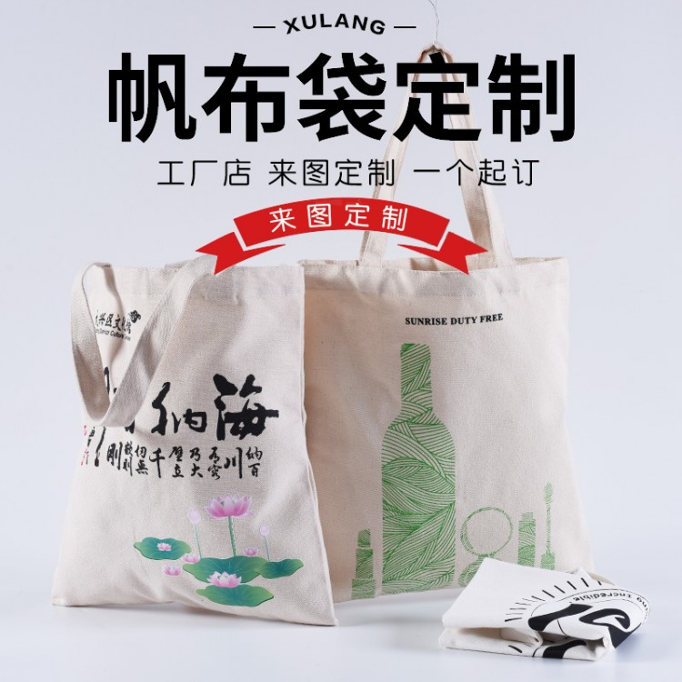 加厚帆布包定制印logo简约环保购物袋 订制大容量帆布袋