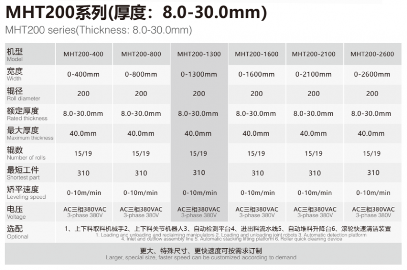 玛哈特数控矫平机在工业上已广泛应用,具有技术先进、矫平精度高、工艺范围广、自动化程度高、高强度下工作可靠稳定等等特点,在轧辊整平过程中,金属板材经过一系列的交替折弯,通过电机和PLC控制对每根整平滚筒的下压量的精确控制,消除内应力,从根本上解决了因板材各部位应力不一样而产生的整平效果不理想情况,从而实现了高精度的整平。