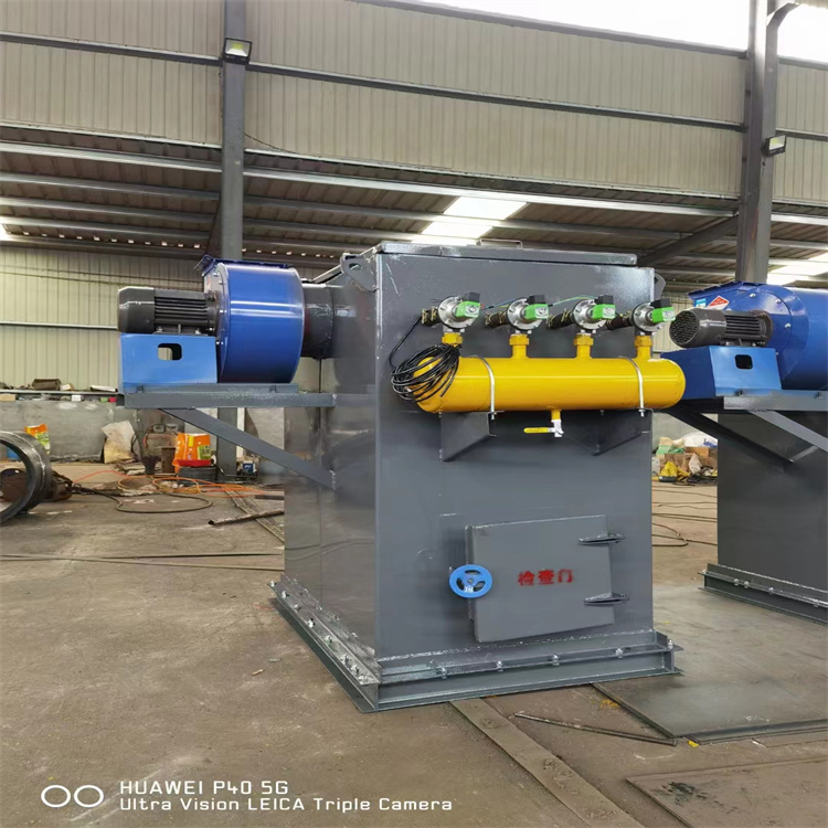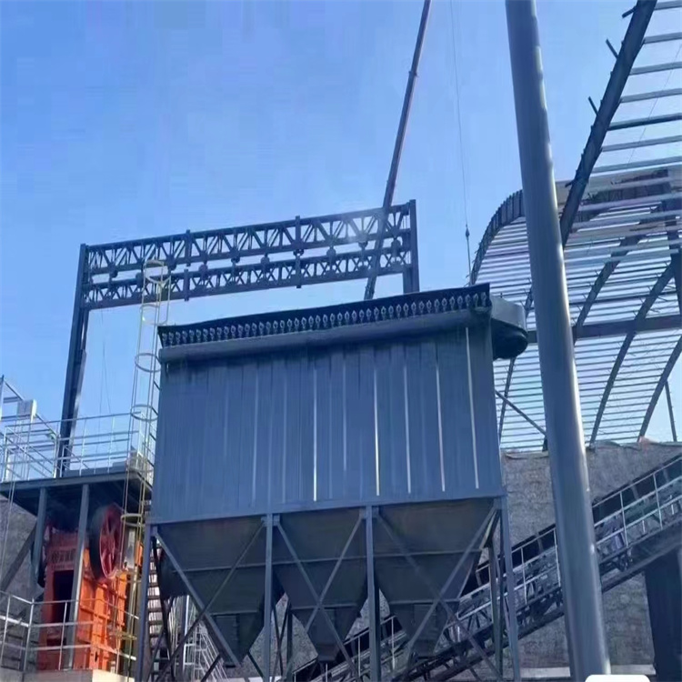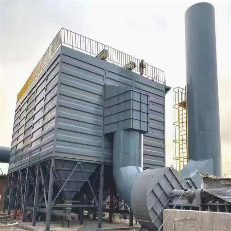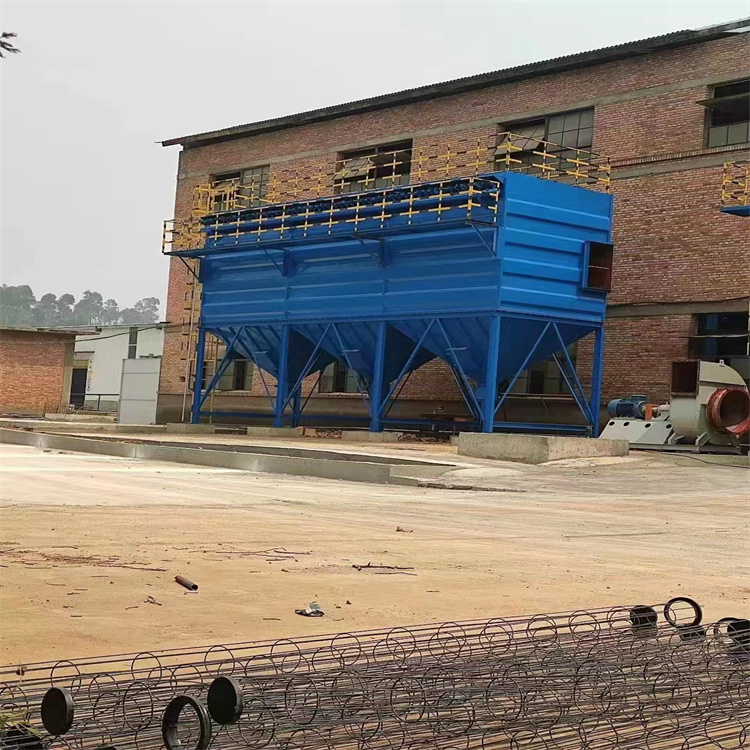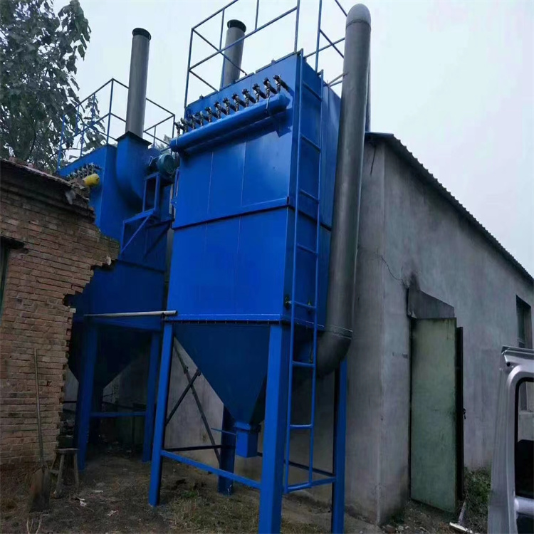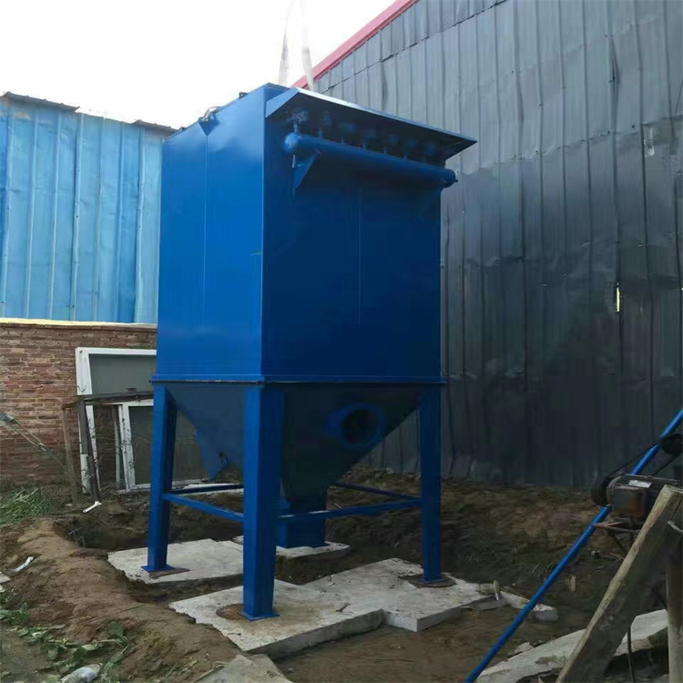 除尘器由灰斗、上箱体、中箱体、下箱体等部分组成,上、中、下箱体为分室结构。工作时,含尘气体由进风道进入灰斗,粗尘粒直接落入灰斗底部,细尘粒随气流转折向上进入中、下箱体,粉尘积附在滤袋外表面,过滤后的气体进入上箱体净气集合管-排风道,经排风机排大气。