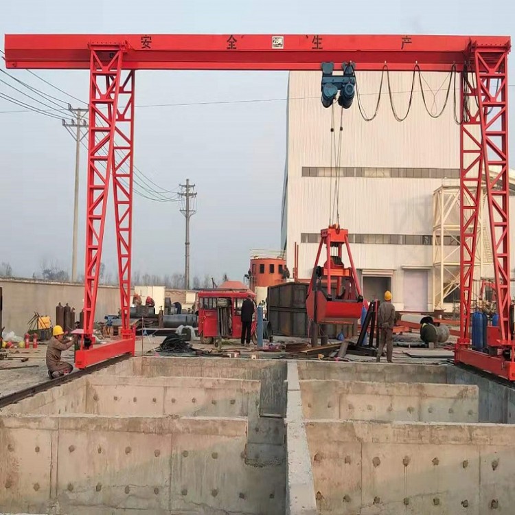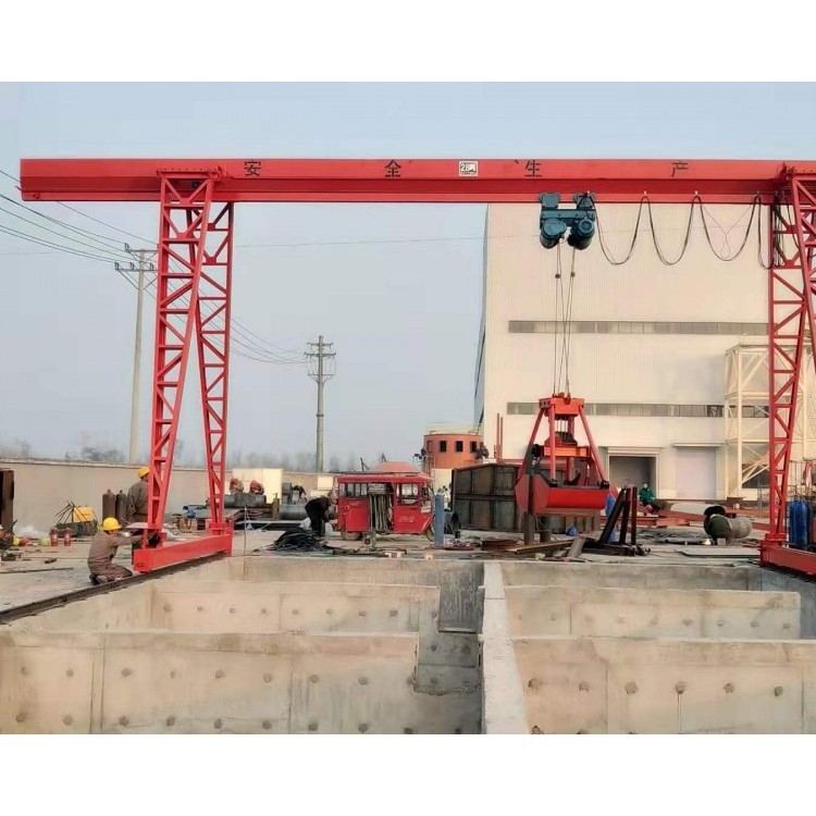 MHZ电动葫芦抓斗门式起重机临沂郯城澳思博恩装饰材料有限公司安装现场