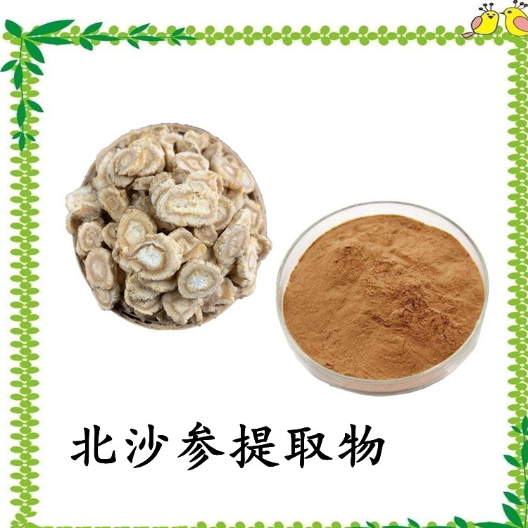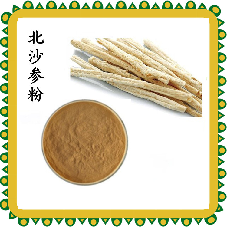【产品名称】北沙参浓缩粉 北沙参速溶粉 北沙参粉【产品别称】真北沙参、莱阳参、辽沙参、海沙参、银条参。【 植物来源】伞形科植物珊瑚菜Glehnia littoralis Fr. Schmidt ex Miq.的根。【 产品规格】10:1 【 产品性状】棕色粉末【 检测】TLC【产品包装】内用双层塑料袋1公斤铝箔,外用纸板桶(25公斤/桶)【 保存】置于阴凉干燥、避光,避高温处。【保 质 期】两年