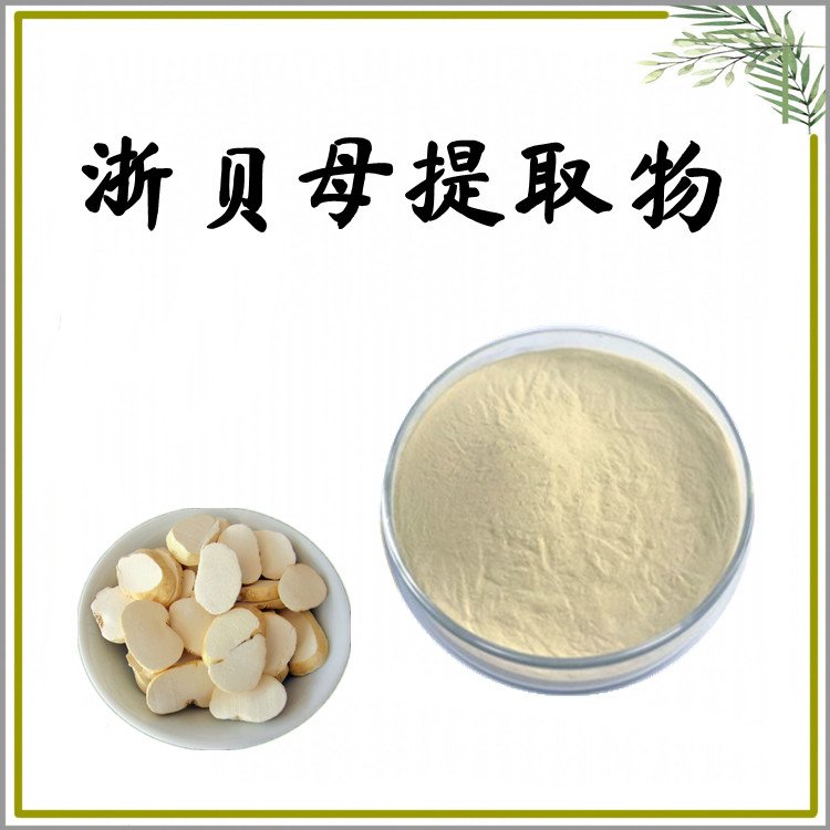 【原料名称】:土贝母,象贝,浙贝、象贝母,大贝母。 【外观性状】:棕黄色粉末 【产品规格】:10:1,20:1,30:1可定做 【提取来源】:百合科植物浙贝母的干燥鳞茎 【浙贝介绍】:多年生草本。鳞茎半球形,直径1.5~6厘米,有2~3片肉质的鳞片。茎单一,直立,圆柱形,高50~80厘米。叶无柄;茎下部的叶对生,罕互生,狭披针形至线形,长6~17厘米,宽6~15毫米;中上部的叶常3~5片轮生,罕互生,叶片较短,先端卷须状。 【原料产地】:浙江、江苏、安徽、湖南等地。