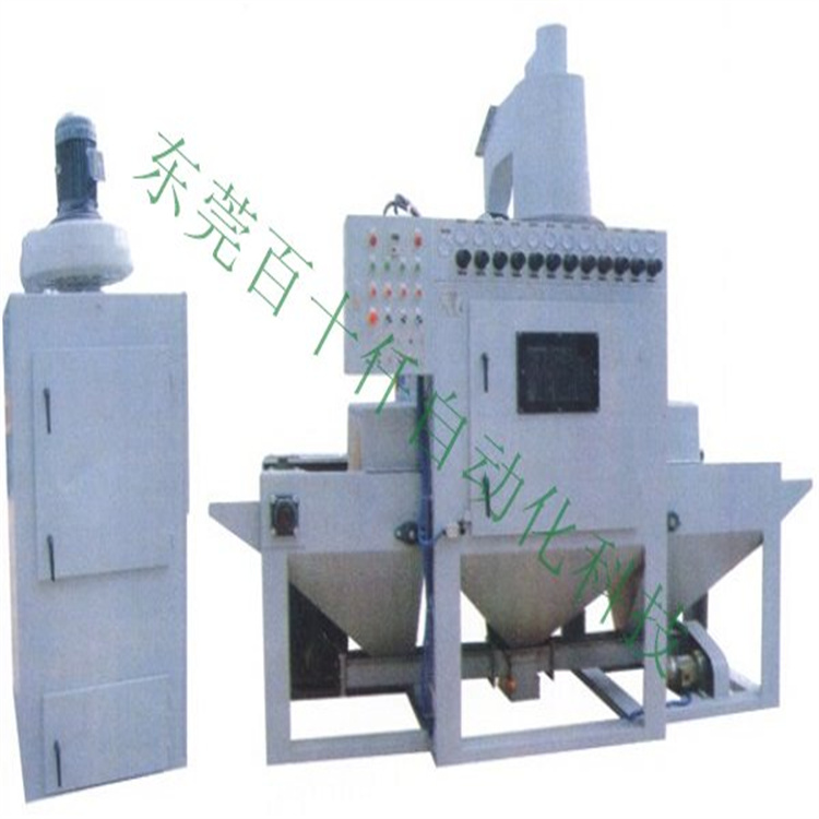 自动输送式喷砂机产品特点: 设备尺寸:3200*1500*2900mm(长*宽*高) 设备功率:9KW 设备重量:1200KG 除尘方式:滤芯除尘,脉冲震打 喷枪数量:8套 回砂方式:气力回收 适用磨料:30#-180#玻璃珠或金钢砂 | 产品特点: (1)采用三角皮带输送,不会集砂,保证回砂效果; (2)喷枪可用随意调节角度; (3)集中控制,操作简单; |