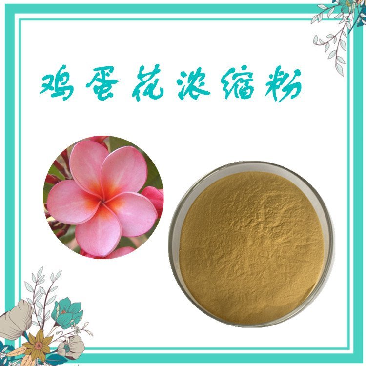 【别 名】缅栀子、蛋黄花、擂捶花、鸭脚木、大季花、番缅花、蕃花、善花仔【来 源】为夹竹桃科植物鸡蛋花的花朵或茎皮用纯净水提取加工,喷雾干燥而成的精细粉末。【生境分布】我国福建、台湾、广东、海南、广西、云南等地有栽培。原产墨西哥。【性 状】性状鉴别 花多皱缩成条状,或扁平三角状,淡棕黄或黄褐色。湿润展平后,花萼较 小。花冠裂片5,倒卵形,长约3cm,宽约1.5cm,呈旋转排列;下部合生成细管,长约1.5cm。雄蕊