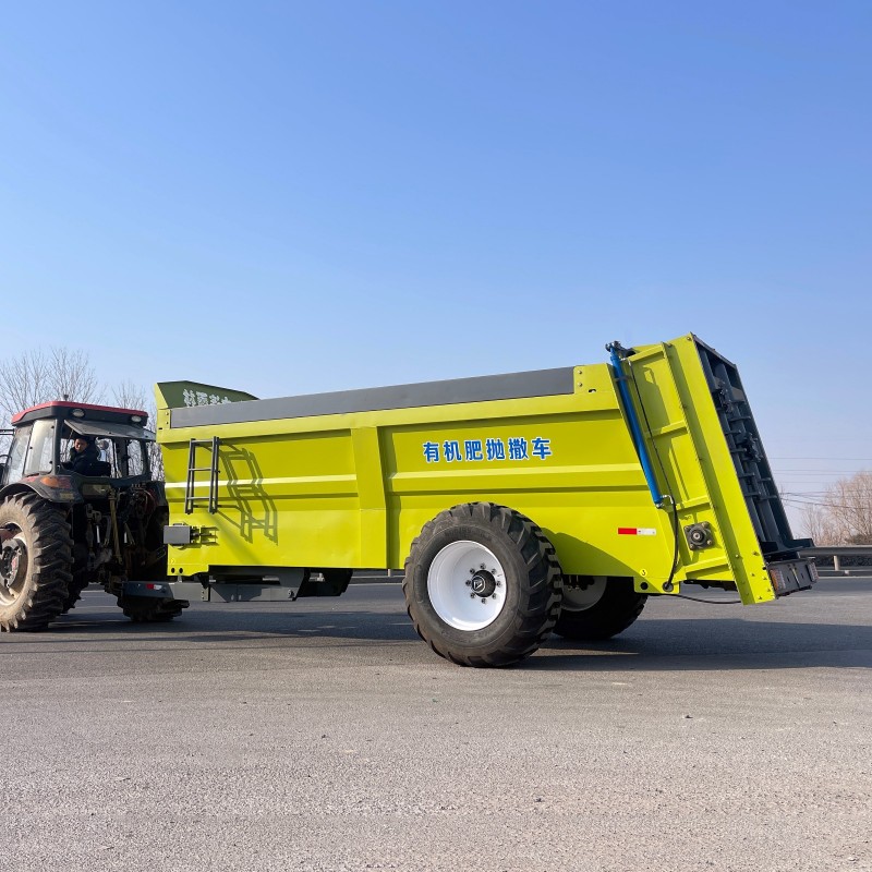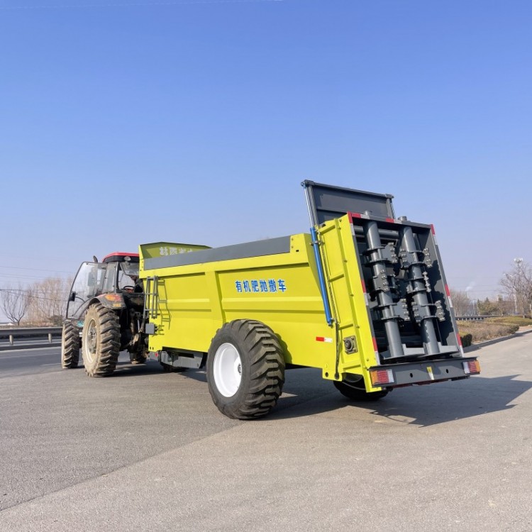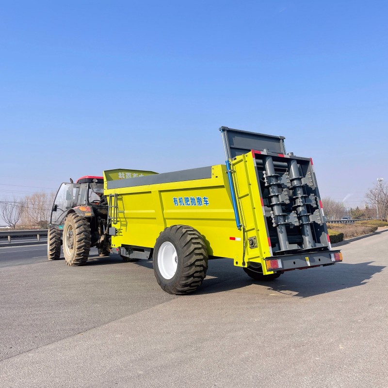 双轴摆锤式抛肥机(撒肥机/撒粪机)是一种以拖拉机为动力,把禽畜粪便、发酵后的有机肥、厩肥(包括堆肥)进行抛撒还田的新型农机具。主要由牵引架、车架焊合、肥箱、液压系统、传动系统、送肥装置、撒肥系统、地轮机构等系统组成。立式双绞龙破碎刃选用优质弹簧锰钢,硬度高、耐磨性好,耐腐蚀,使用寿命长,破碎能力强,能有效打碎所抛撒的有机物料,将禽畜粪便有效抛撒到田间,撒播细碎、均匀。可提高土壤养分的有效性,改良土壤结构,提高土壤的保肥力和保水力,减轻粪污环境污染,对农牧业禽畜粪便机械化还田起着重要的意义。