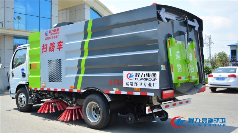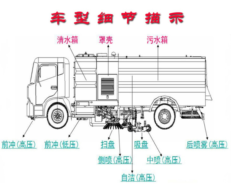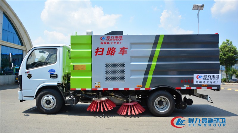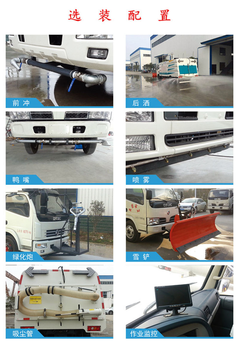 整车配置:该扫路车采用东风小多利卡二类底盘改装,加装副发动机、风机、清水箱、垃圾箱、左右立扫、扫盘降尘系统,液压系统、专用装置电控系统和副车架