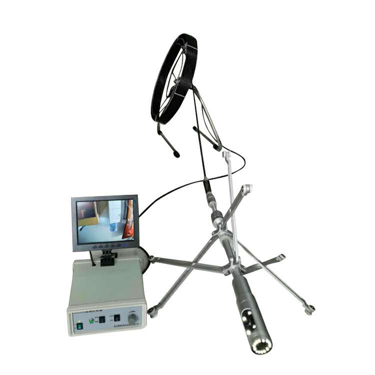 KYD-G旋转型电子内窥镜是集光学、精密机械、电子技术和显微摄像技术与一体的新型无损探伤仪器,探头的旋转是由微型电机来控制的,它的探头同时拥有直视和侧视两个CCD,探头插入时先用120°的广角镜头宏观地观察管道内部的情况,发现问题后再切换到侧视探头细致地观察,侧视时探头可以360°电动旋转并可在需要时停止,电动调焦能适应各种管径,随机配备的可调节的定中心支架能使探头始终处在管道的中心,高亮度的照明能使被检物体的像更清晰柔和,十几米长的高弹力硬质电缆线收纳于线盘之中,使探头的插入和退出十分方便快捷。该种电子内窥镜具有分辨率高、色彩逼真、图象清晰、被检部位形状准确、检测距离长、操作灵活等特点。检测过程中还可对图象进行拍照、录像、存储、回放、删除,并能通过USB接口和计算机连接,能非常方便地对资料进行存档和调阅。